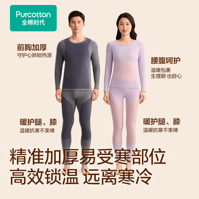 ubras大圆领保暖内衣男女士套装 羽绒化发热抗菌低领肌底秋衣秋裤
