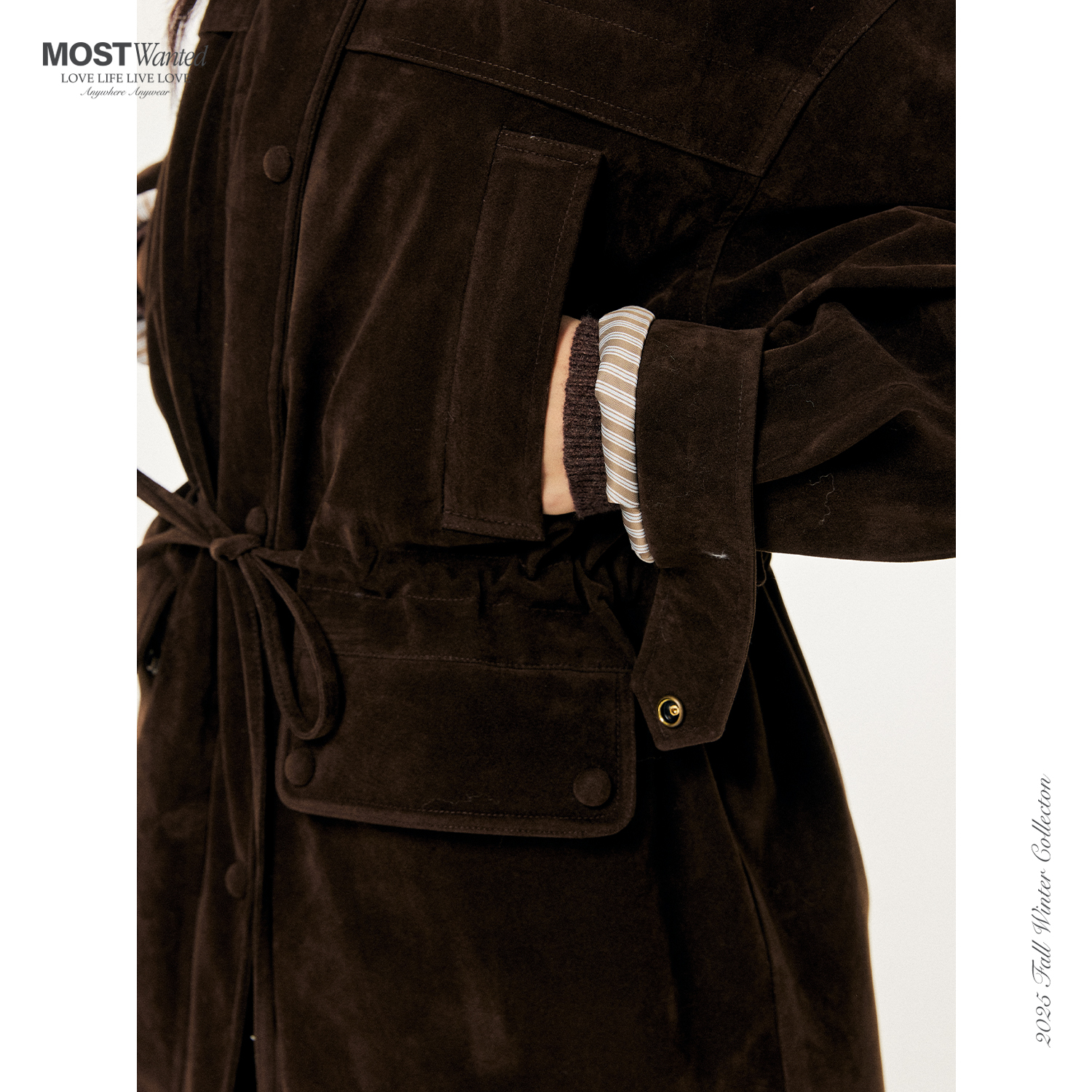 冬装 2025新款 厚外套 夹克棉服女款 mostwanted可脱卸毛领麂皮中长款