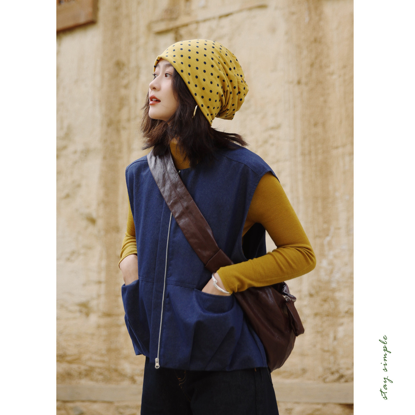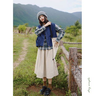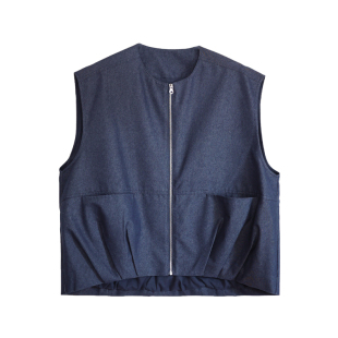 花吉C080蓝色花苞剪裁拉链宽松无袖 秋马夹上衣 牛仔马甲女2026新款