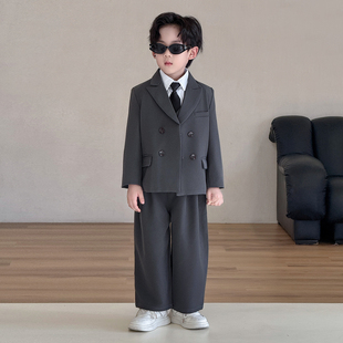 罗蒙男童西装 花童儿童表演礼服帅气男孩外套小西服钢琴演出服 套装