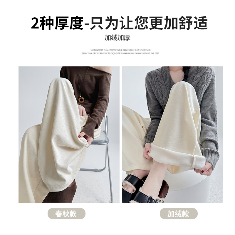 高级宽松bf慵懒垂感直筒加绒休闲阔腿裤 2025新款 子女春秋季 糯米裤