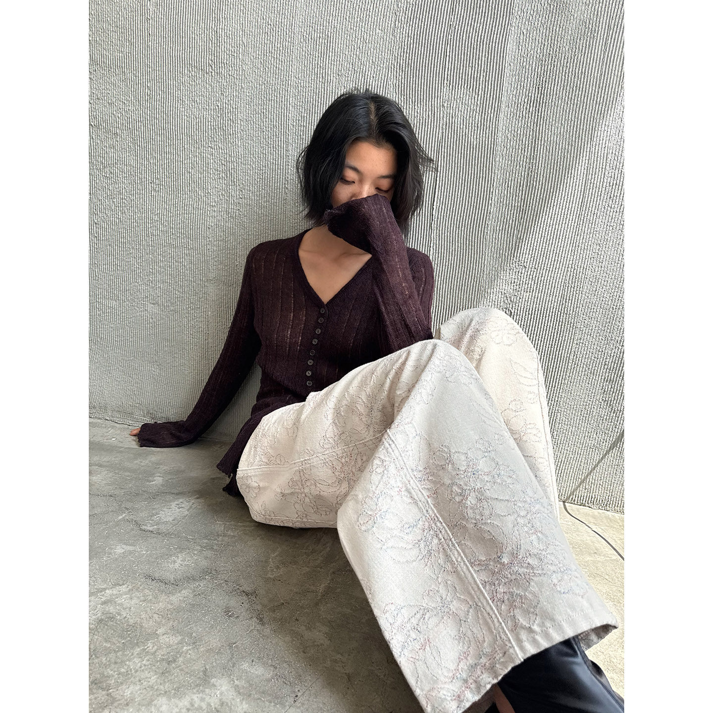 高腰显瘦纯欲提臀长裤 李李服饰纯白蝴蝶结丰胯微喇牛仔裤 女25冬季
