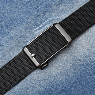 带 免打孔皮带简约无牙帆布百搭裤 男士 尼龙自动扣腰带休闲编织个性