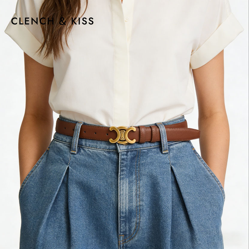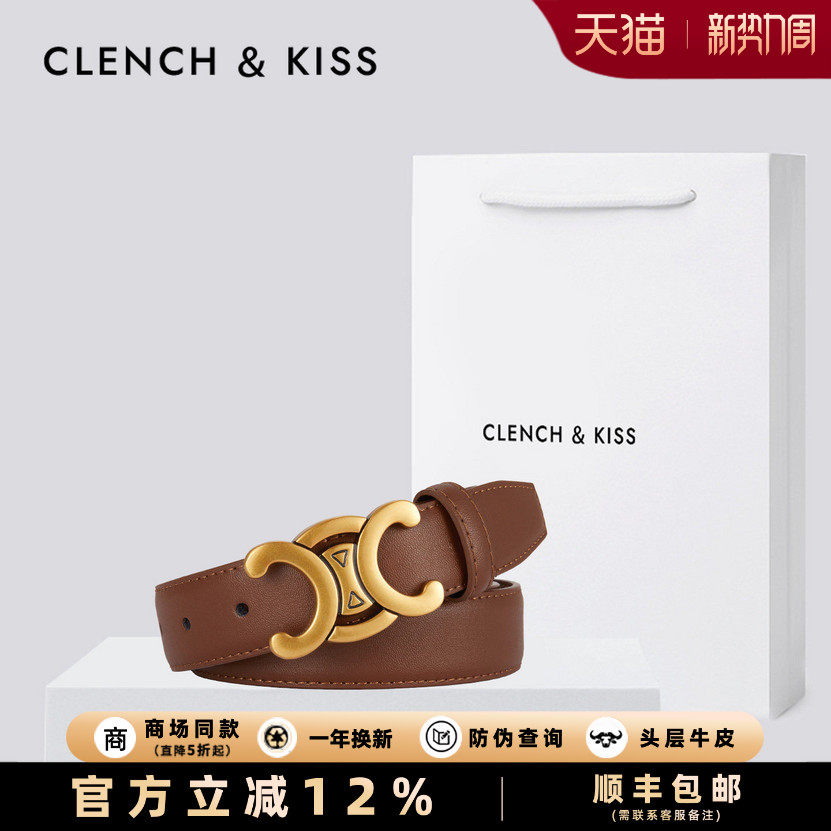 饰配牛仔 女士皮带女装 官网Clench Kiss真皮细腰带女小众百搭新款