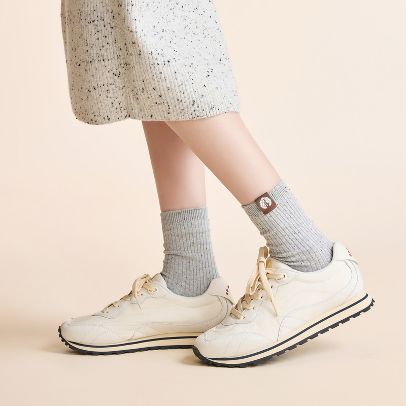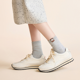 韩系中筒袜子女士纯色休闲长腰竖条纹堆堆吸汗防臭春秋款 美腿月子
