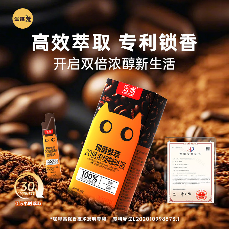 金猫咖啡20倍浓缩咖啡液阿拉比卡速溶黑咖啡美式 醇香咖啡0糖0脂