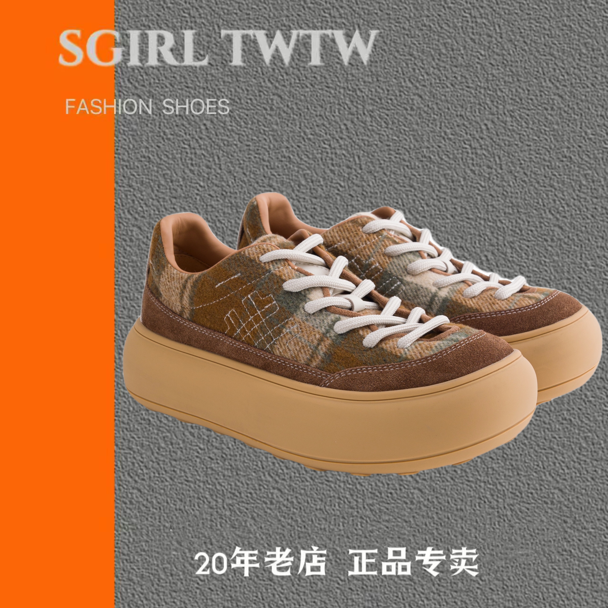TWTW豹纹厚底鞋 复古格子面包鞋 新款 美式 女 大头松糕加绒板鞋 SGIRL