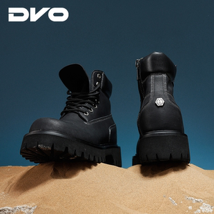 黑色英伦风增高厚底中高帮靴子男鞋 冬季 2025新款 回力马丁靴男款