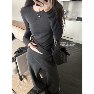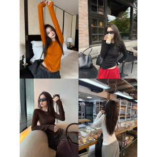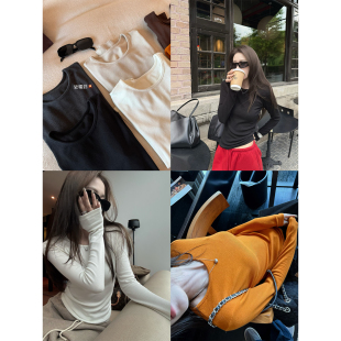 大弹力修身 版 显瘦圆领打底T恤休闲上衣 磨毛tee长袖 superniniyy
