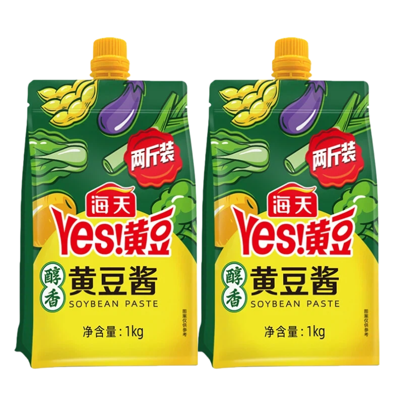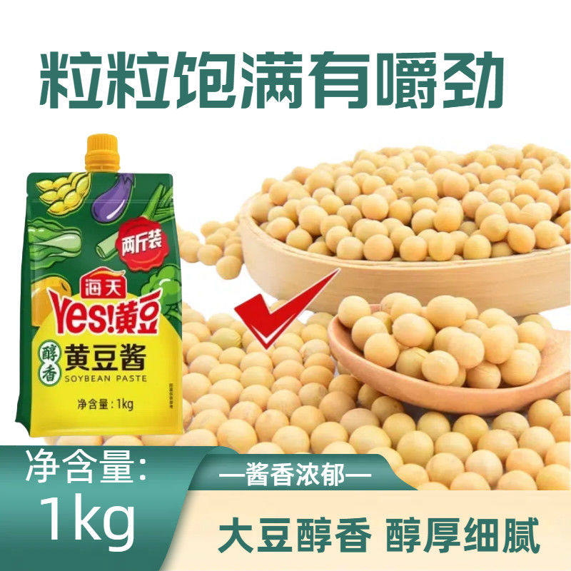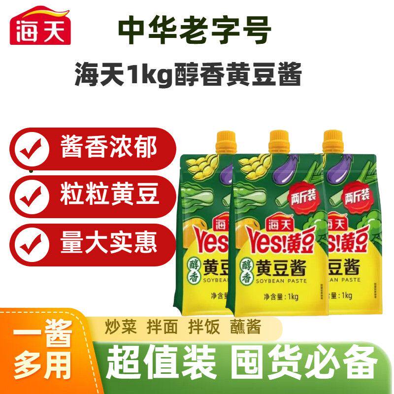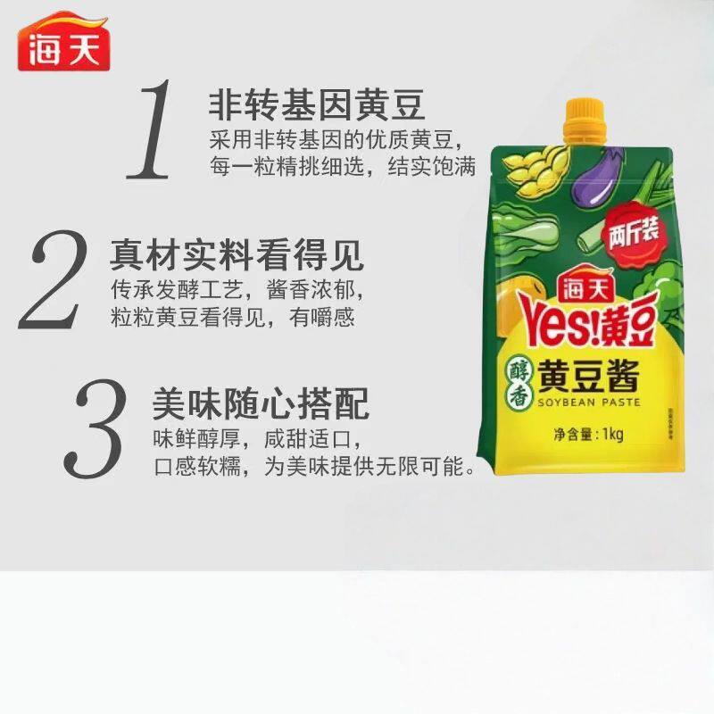 海天黄豆酱醇香豆瓣酱1kg袋装 东北大酱0添加800g官方旗舰店 挤挤装