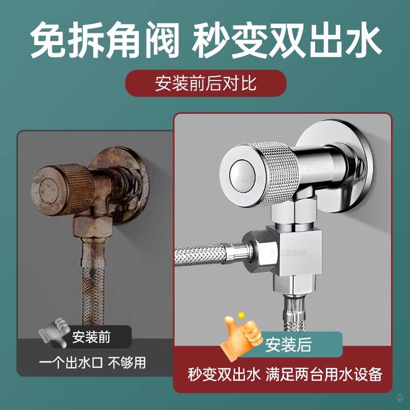 304不锈钢一进二出三出四出双控双出水角阀4分多功能分流器水龙头