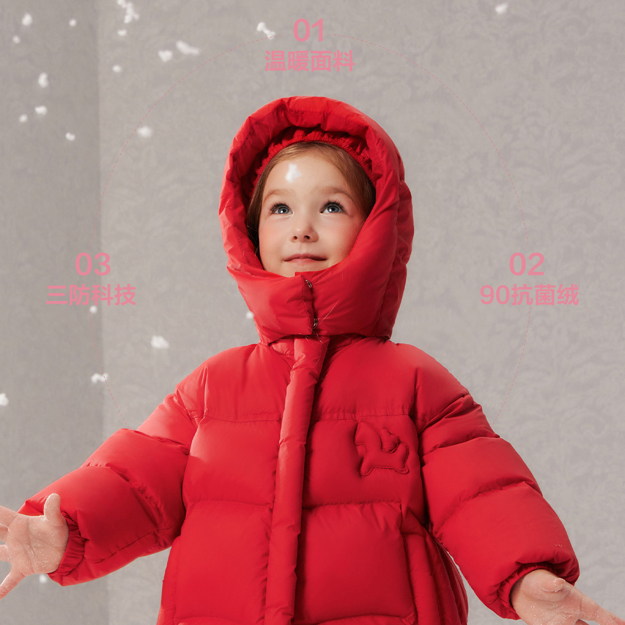 红色外套 女宝宝小童儿童加厚中长款 笛莎童装 女童羽绒服2025秋冬装