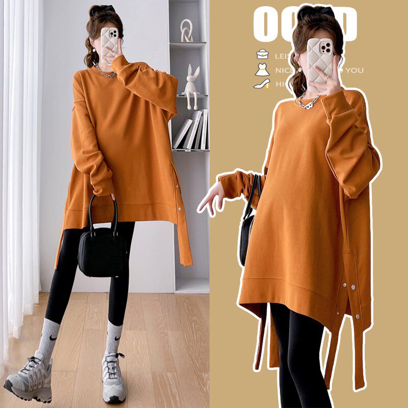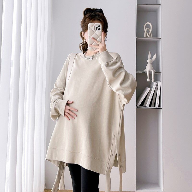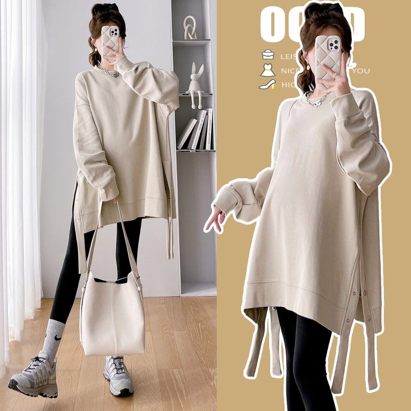 春装 L休闲上衣春季 时尚 卫衣春秋宽松大码 怀孕打底 开叉长袖 孕妇装