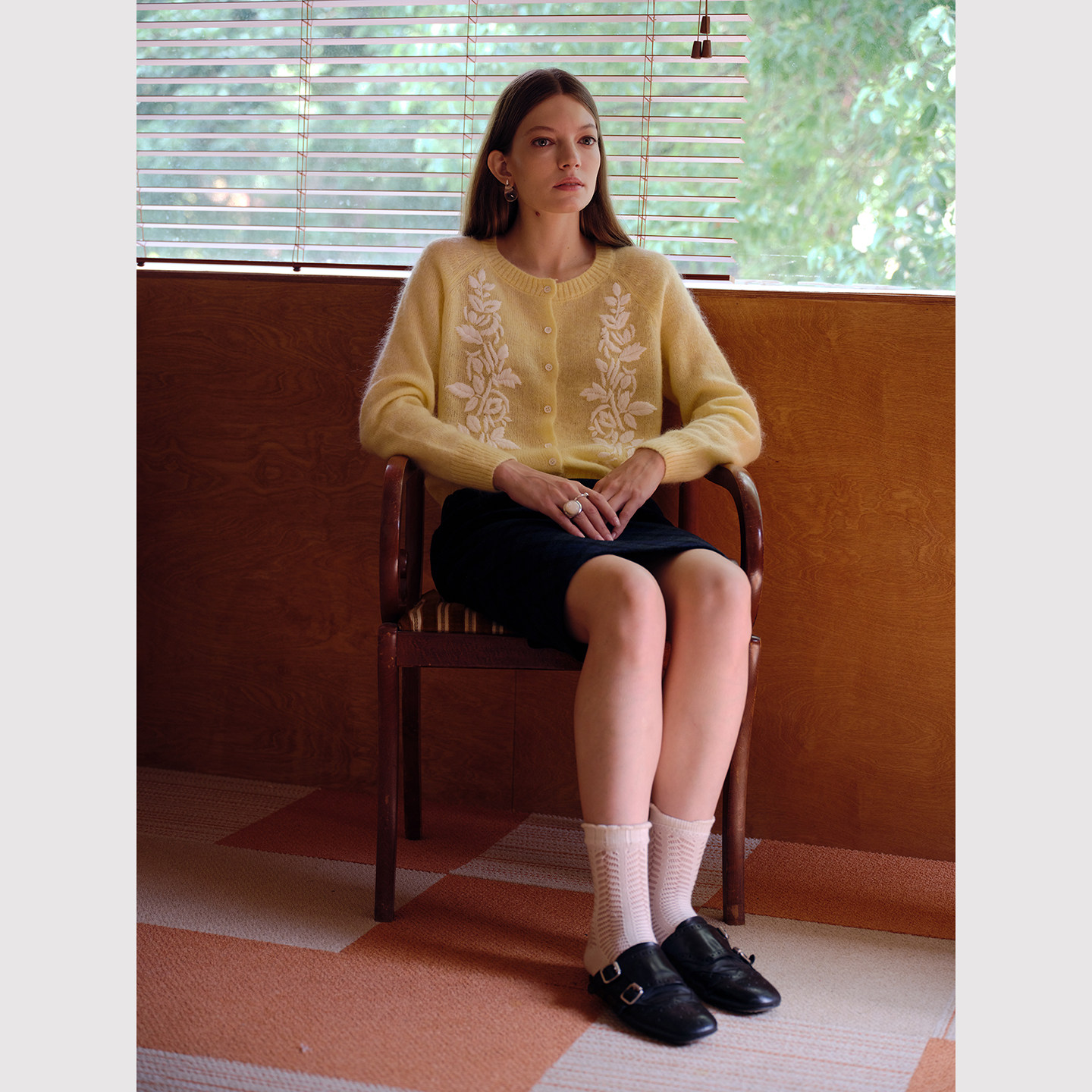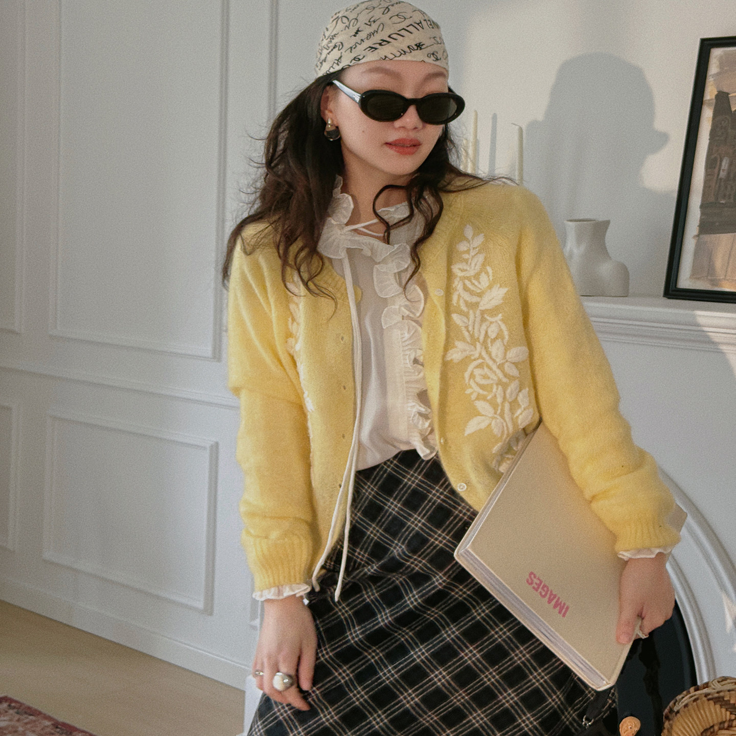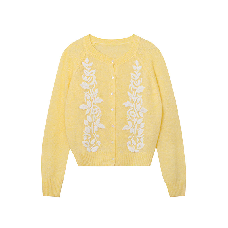 复古撞色立体绣花马海毛羊毛暖绒感针织开衫 TOP家暖冬小太阳 法式