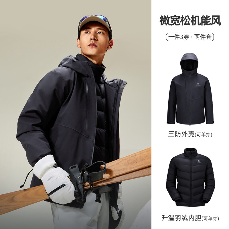 骆驼冲锋衣男女款 防风防水保暖羽绒服外套男 三合一可拆卸2025新款