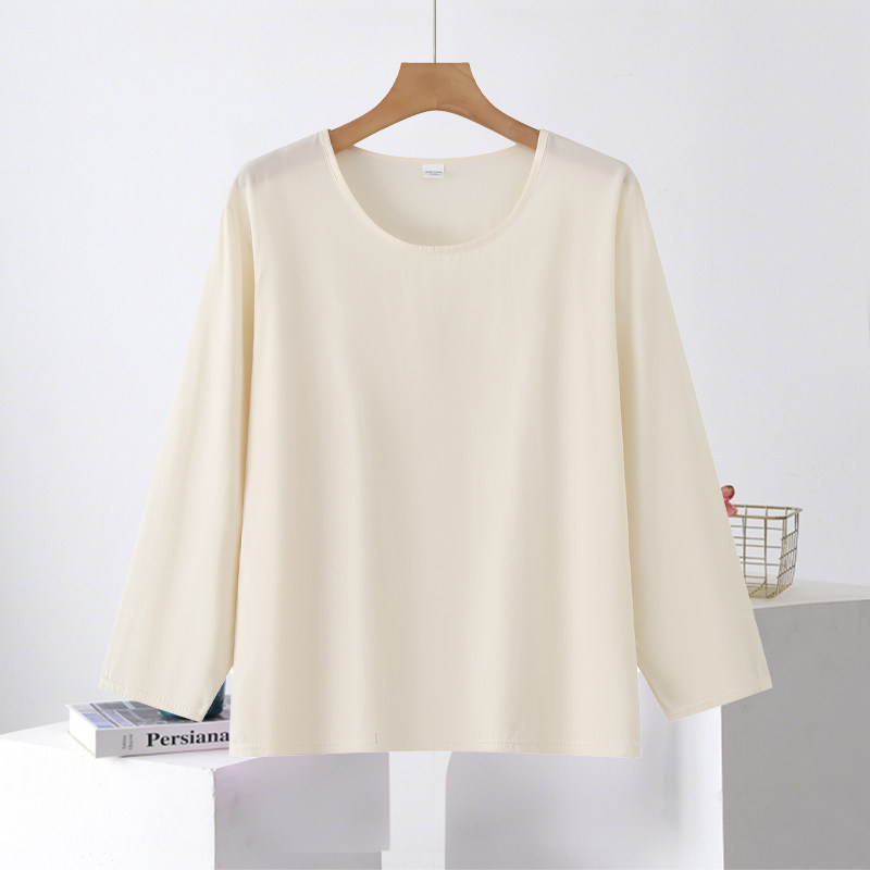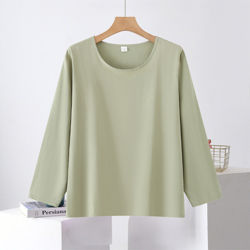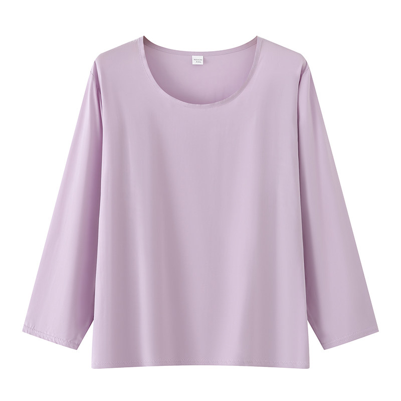 宽松圆领长袖 薄款 透气家居服高端外穿 棉绸睡衣上衣女夏季 年轻款