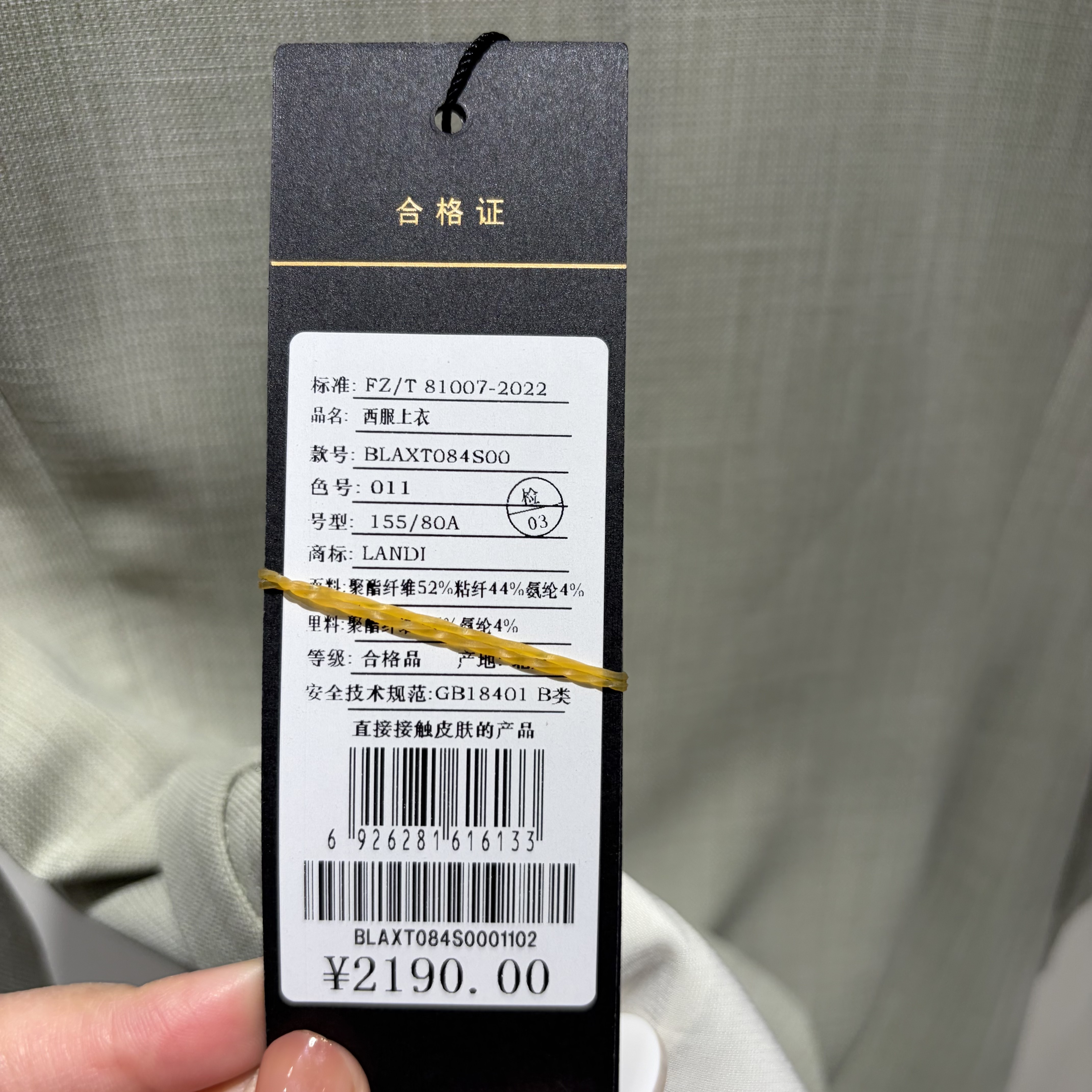 上衣BLAXT084S00 LANDI 2026年夏款 国内代购 2190 蓝地专柜正品