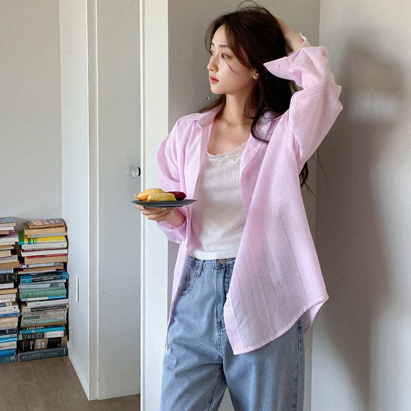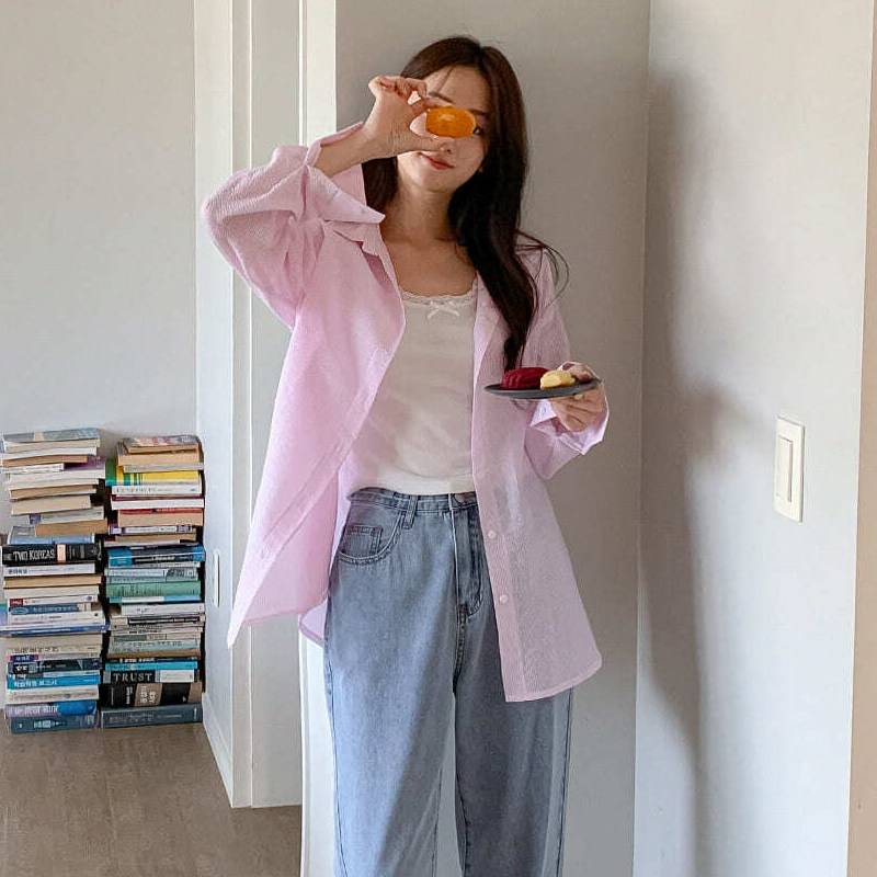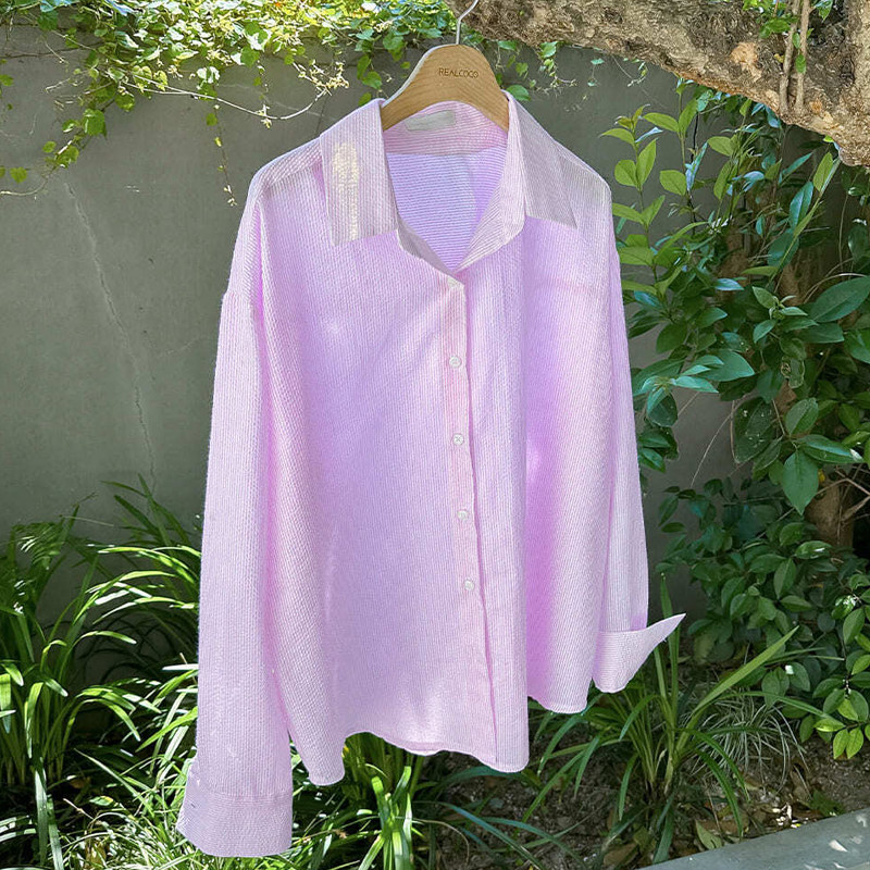 外套外搭衬衣小开衫 HEBJ 女宽松长袖 衬衫 小众设计感上衣 粉色春季