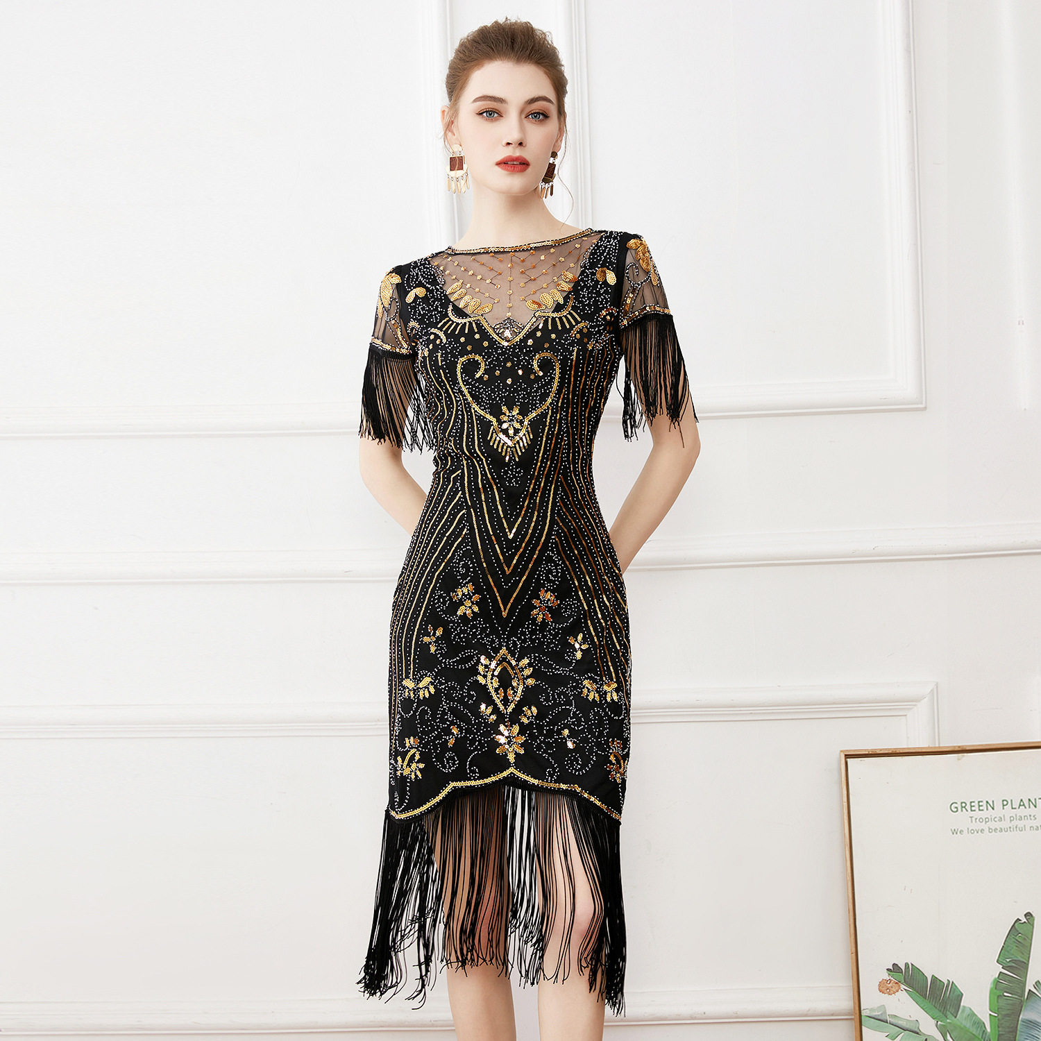 Gown Embroidered Tassel 1920s cktail Ball Dress Part Vintage