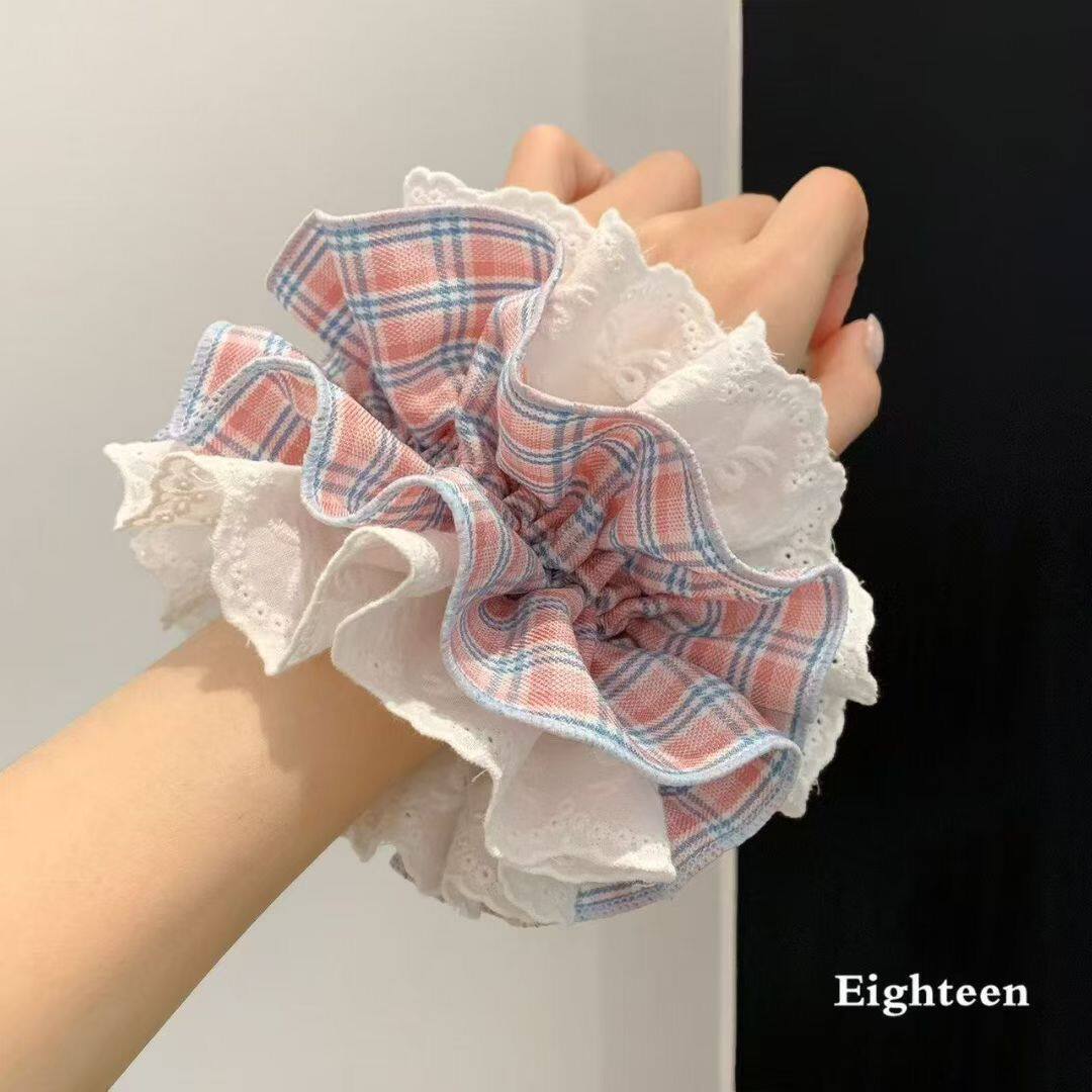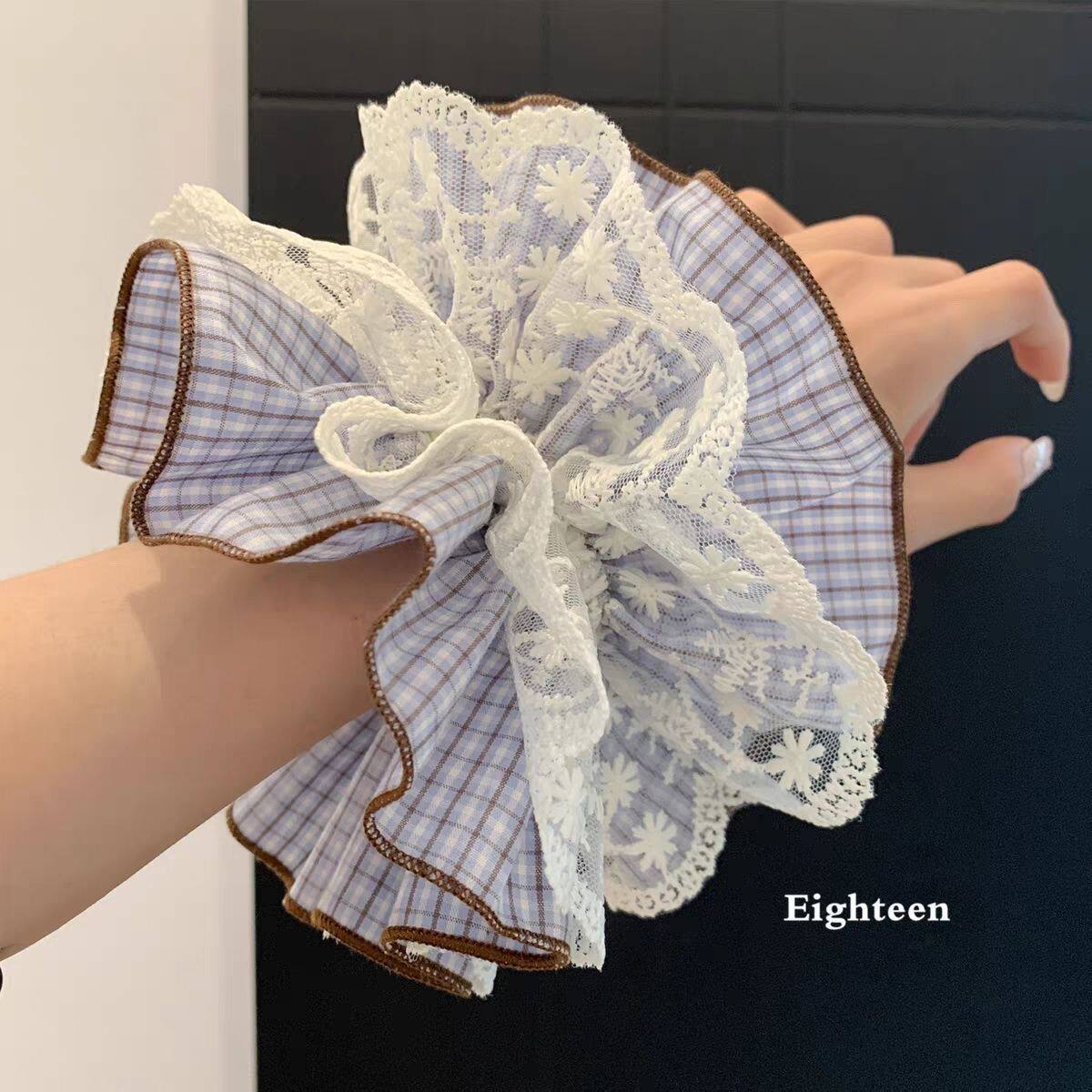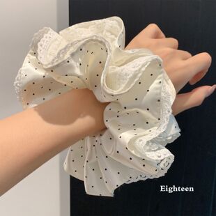 波点温柔到丸子头发饰缎面蕾丝法式 碎花 黑色三件 格纹 韩系发圈