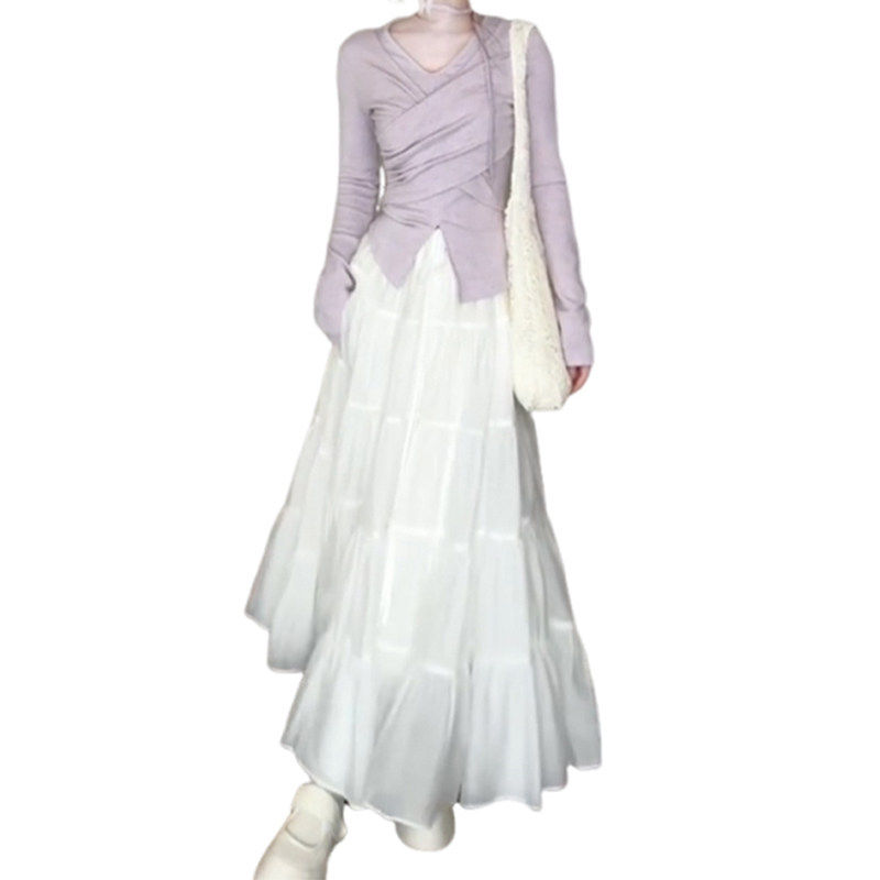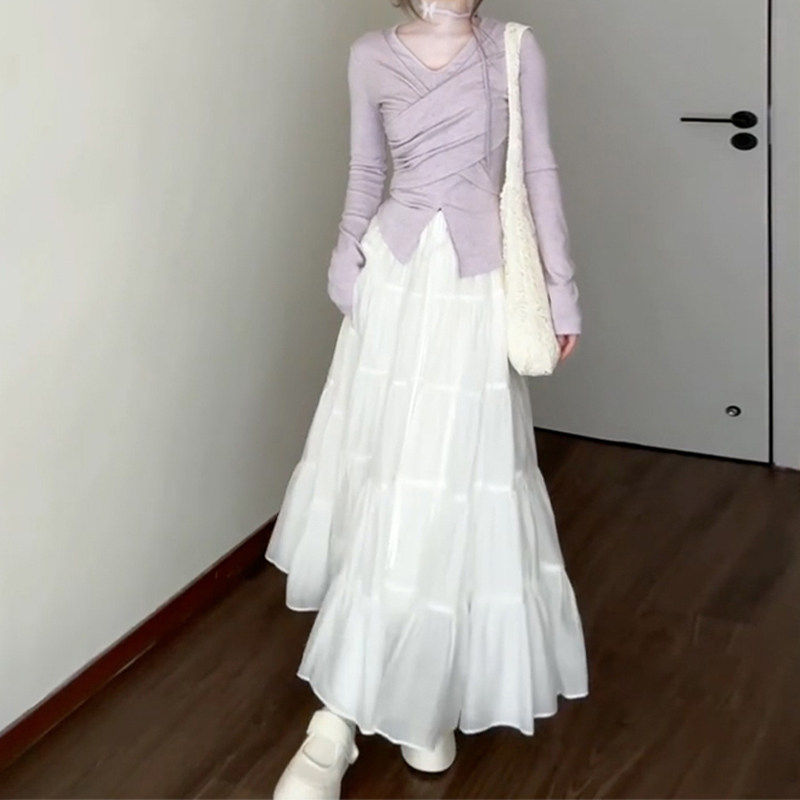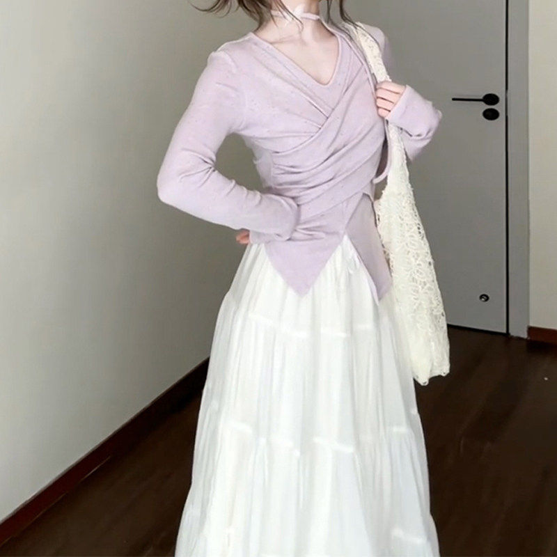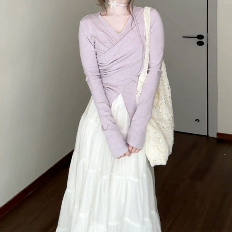 子女春季 洋装 2025新款 小个子开 法式 春穿搭气质长裙套装 紫色长袖
