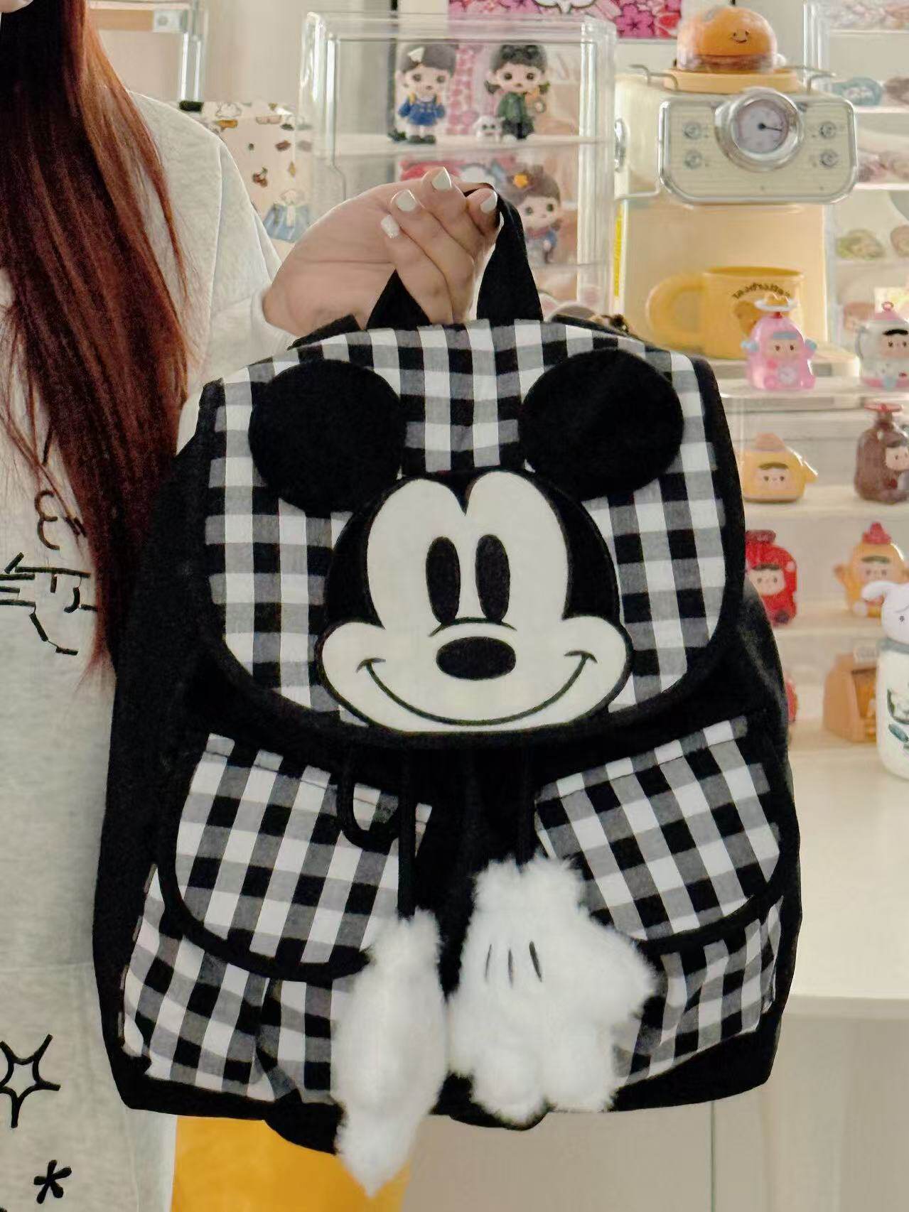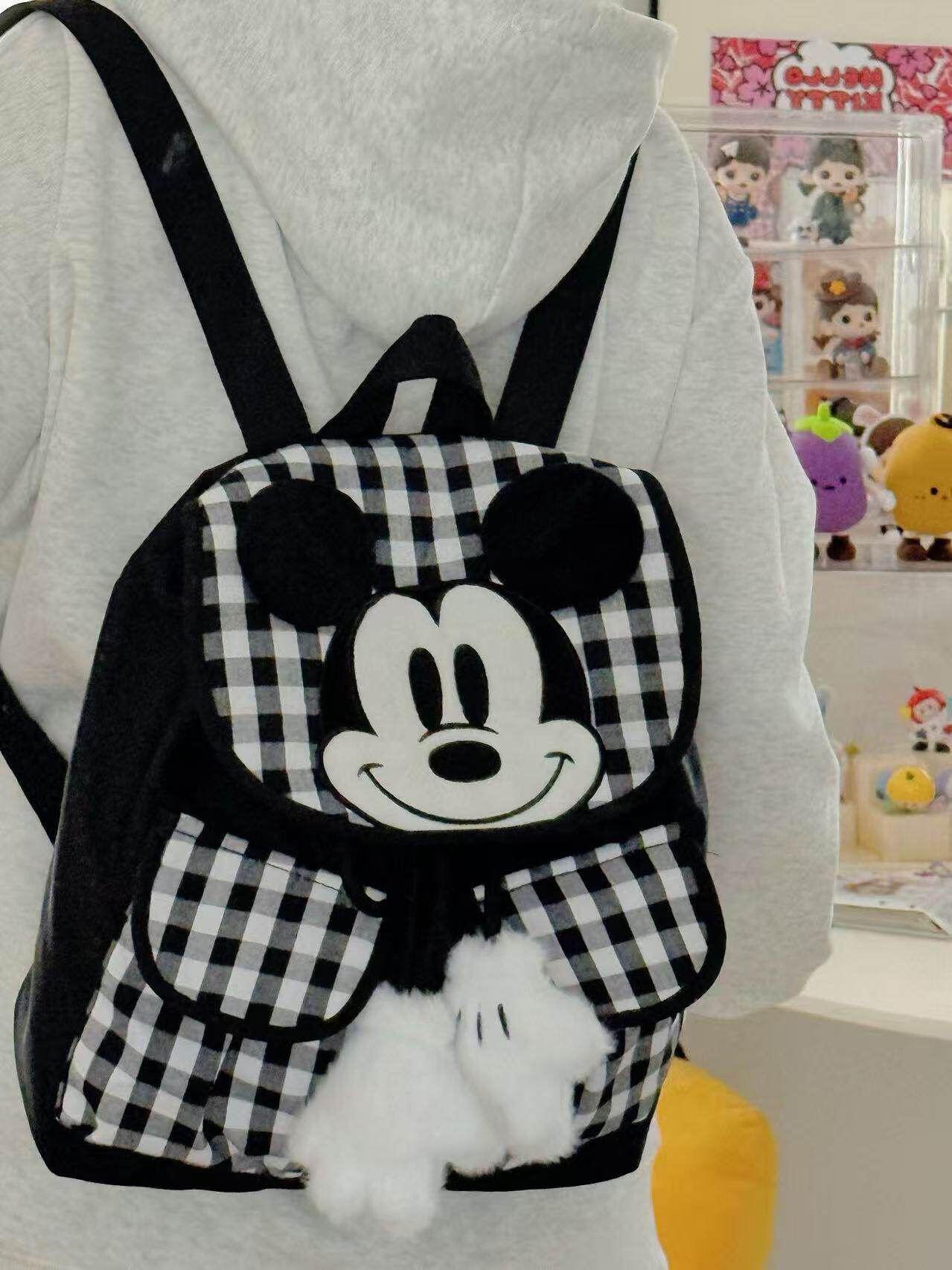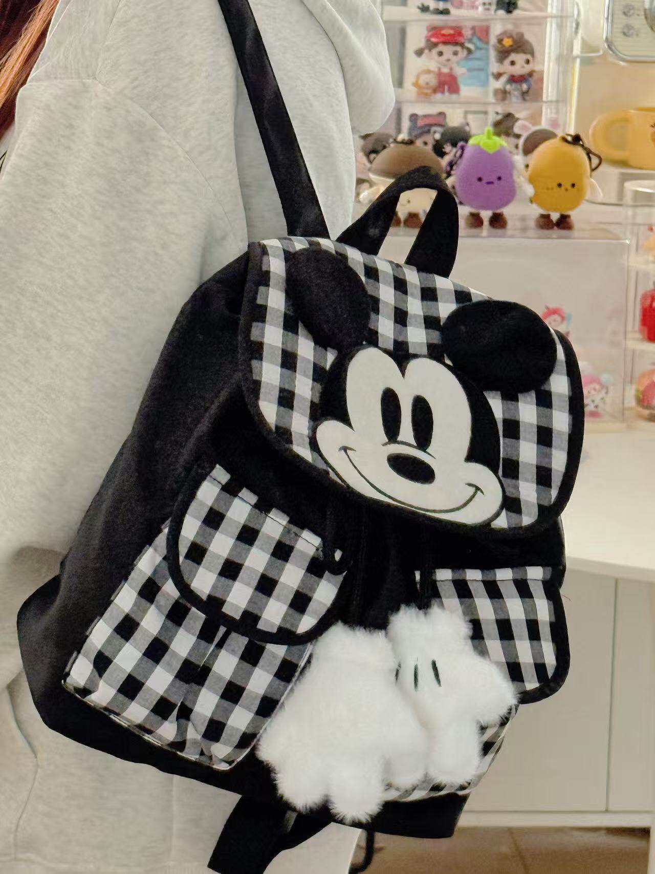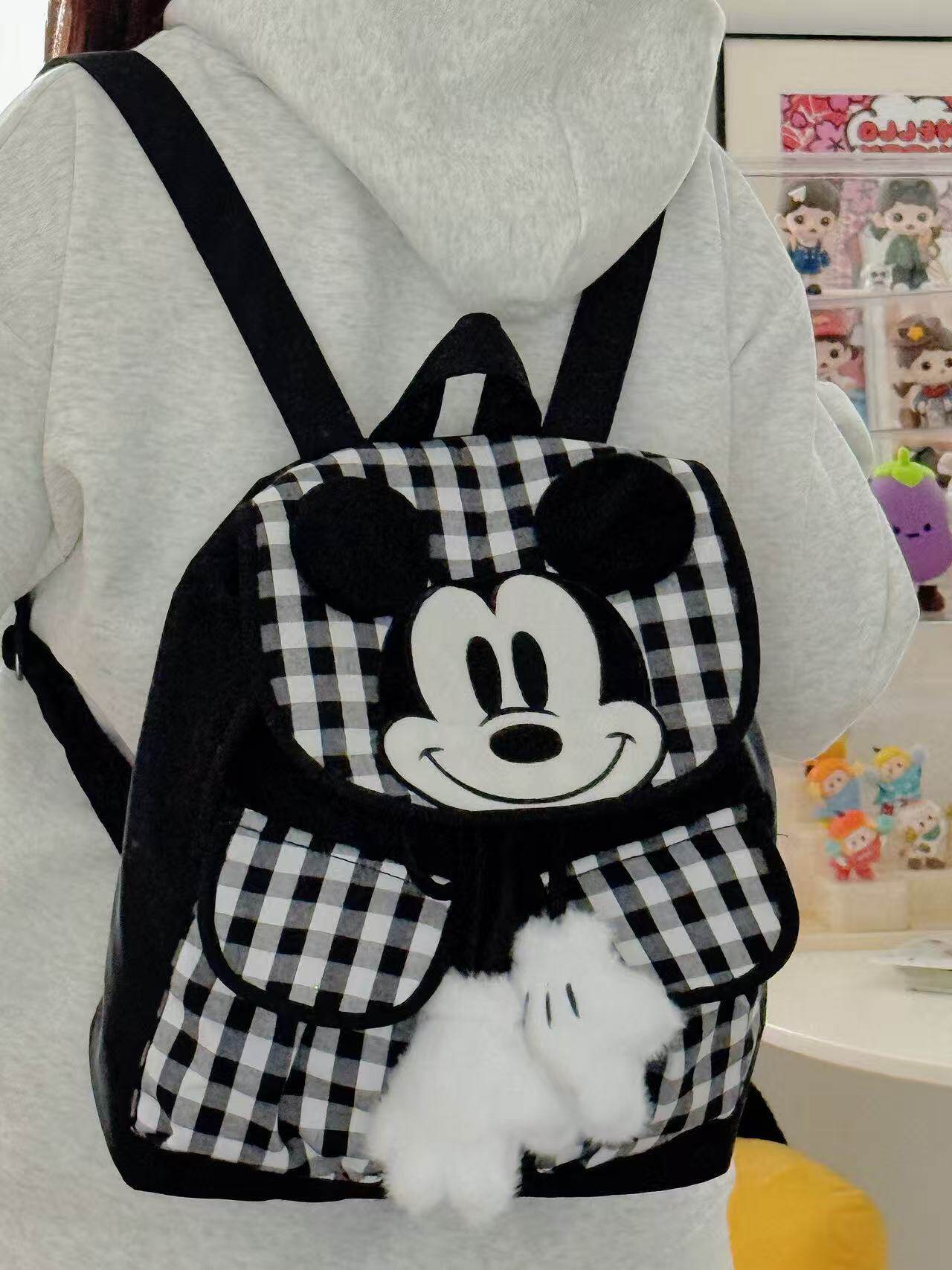 小众设计黑白格子米老鼠可爱双肩包休闲百搭背包学生外出旅行包包