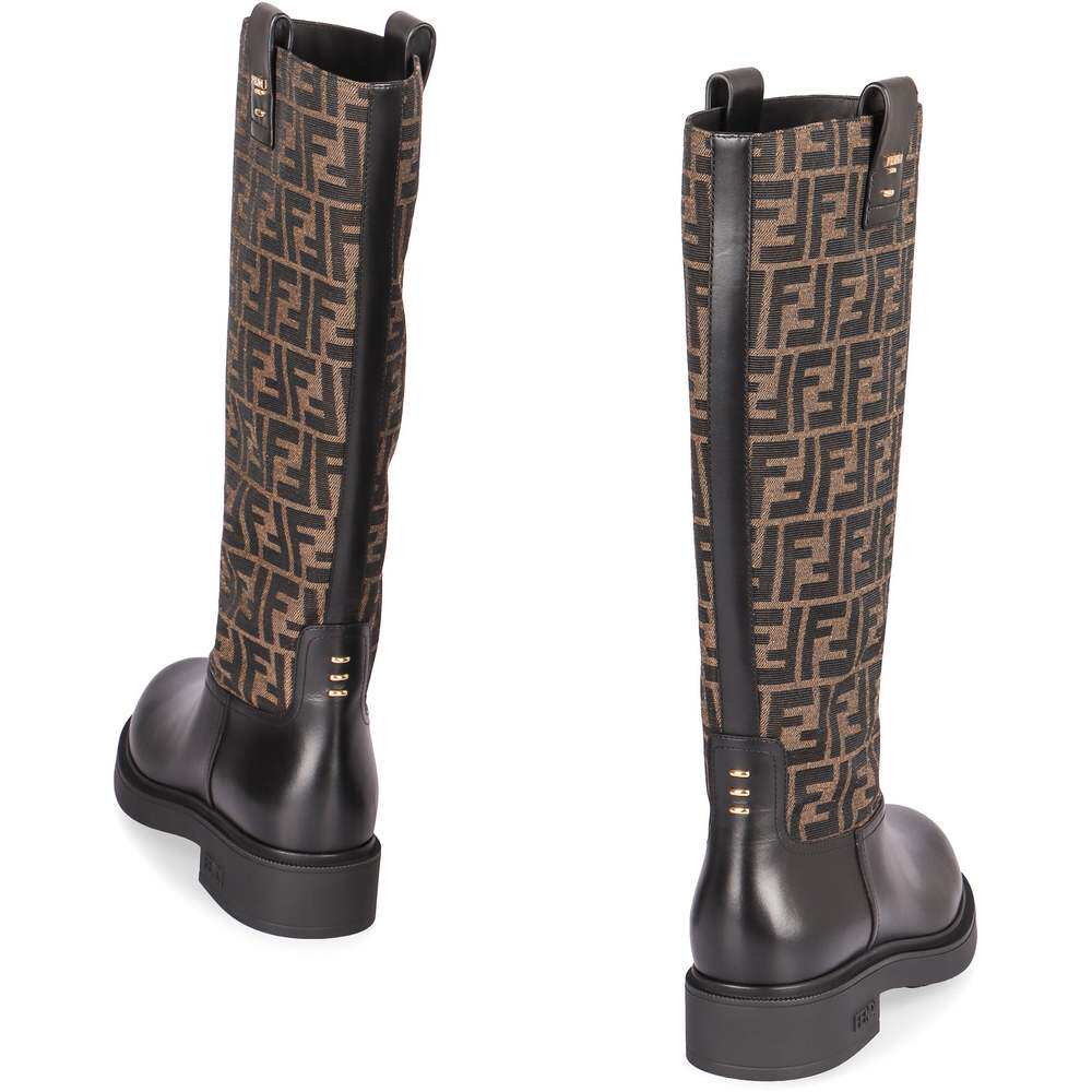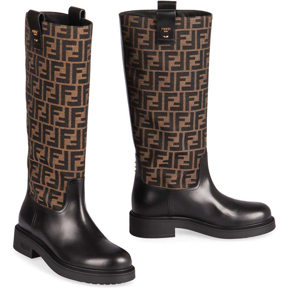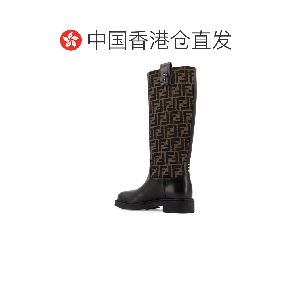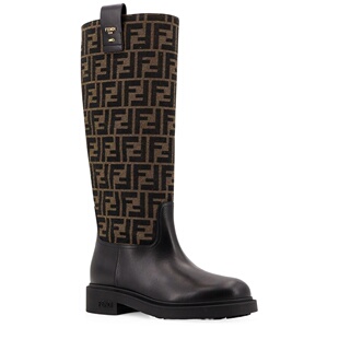 香港直邮FENDI芬迪Filo老花帆布拼牛皮女士长筒靴高筒靴8W8574