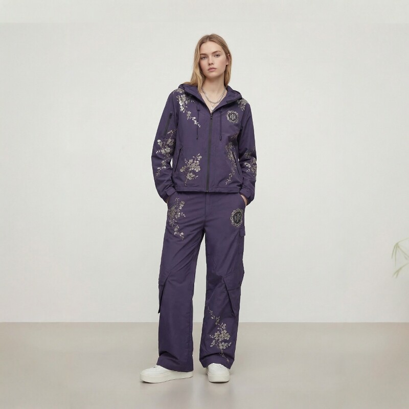 TCH潮牌烫钻梅花连帽工装 78A27E1028 外套女宽松夹克男26春夏新款