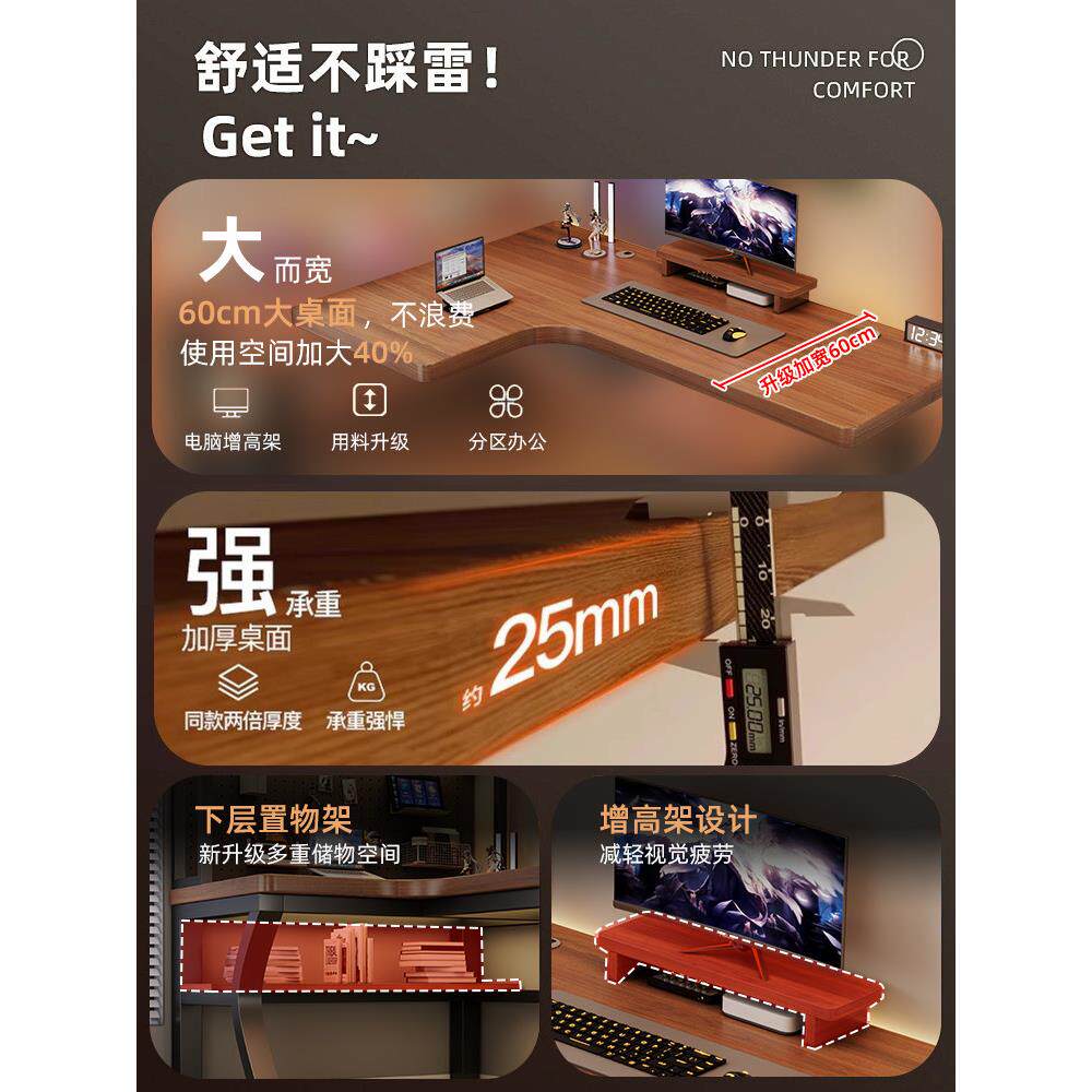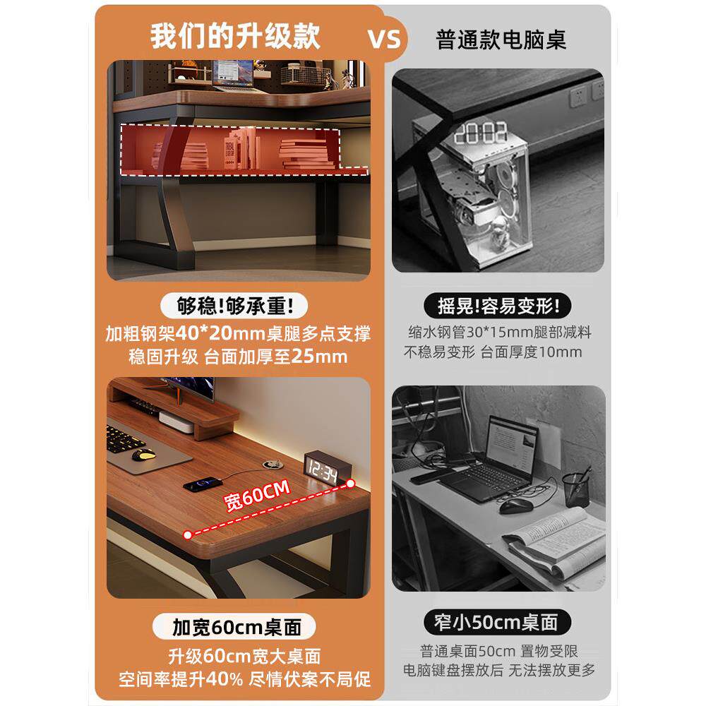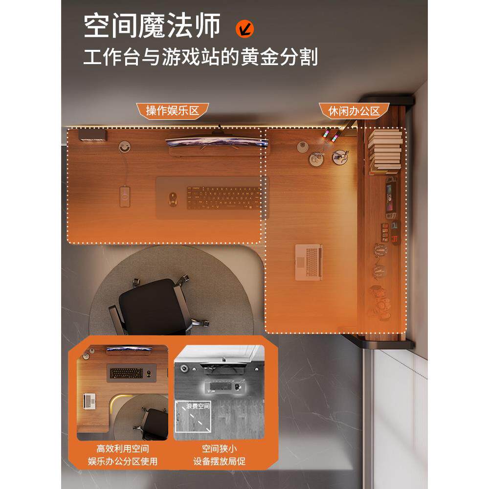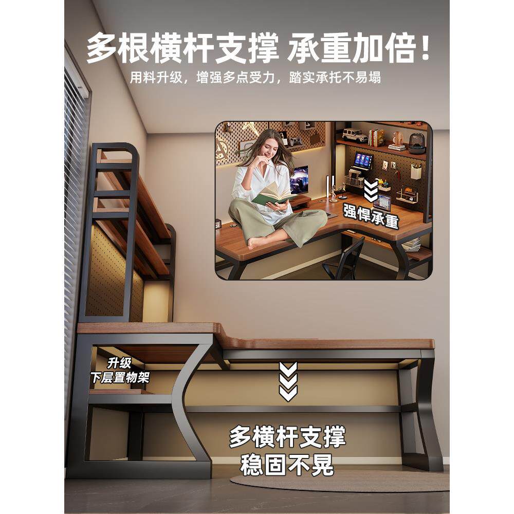 实木转角电脑桌卧室家用台式 书桌书架一体拐角办公桌双人电竞桌子