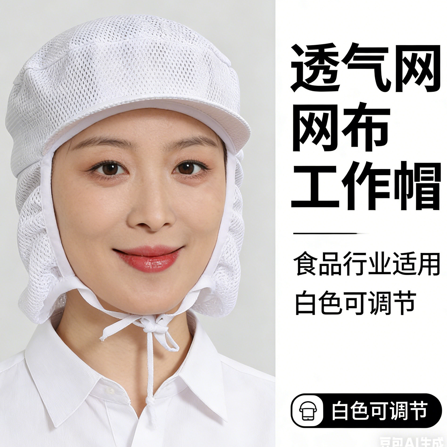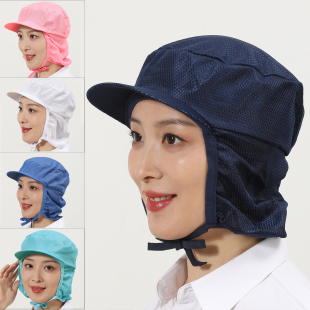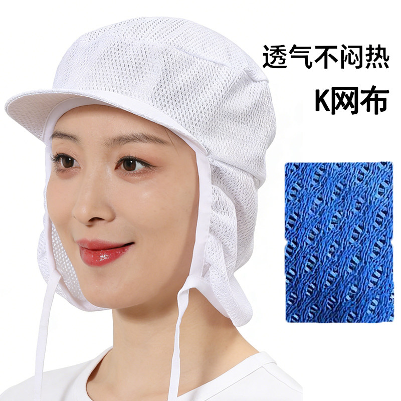 工厂网格透气防护帽 头部防护系带包发帽子用品 食品车间工作专用