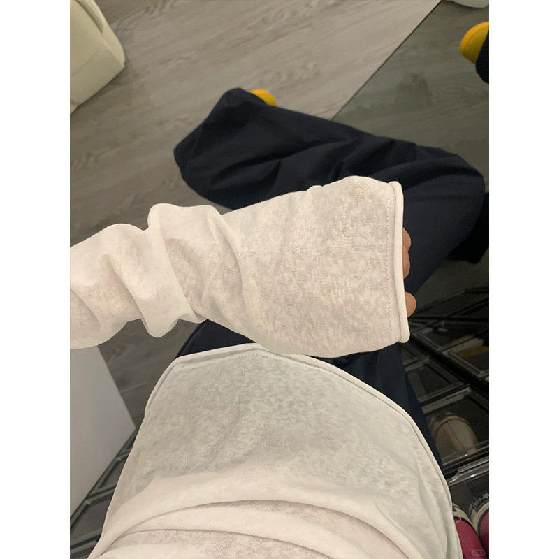 chic卷边松弛感长袖 白色打底衫 防晒罩衫 夏季 T恤内搭上衣 女薄款