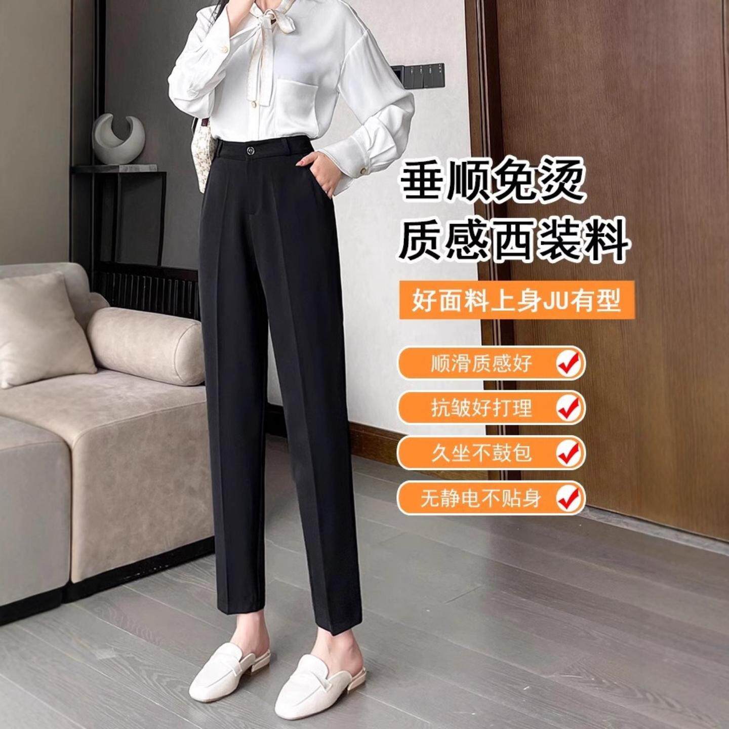 裤 职业烟管西裤 女春秋夏季 直筒小个子九分工作裤 新款 黑色西装