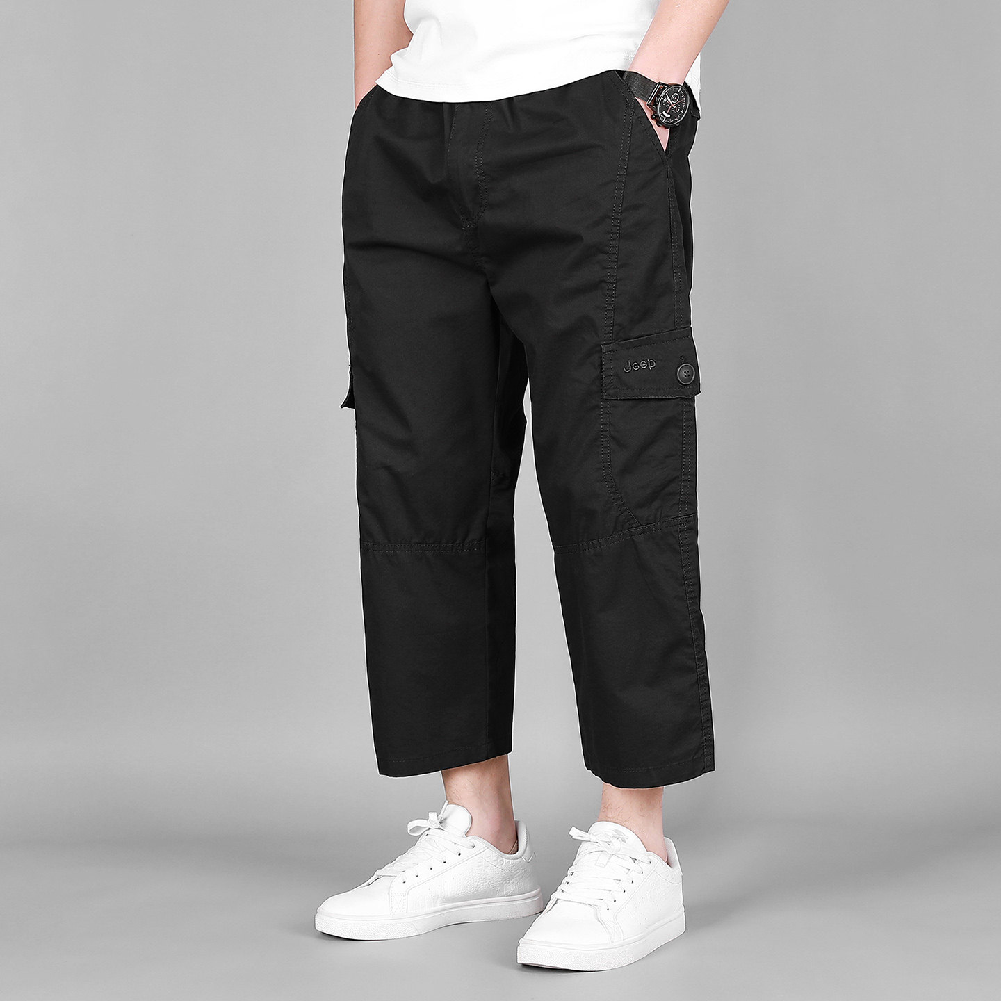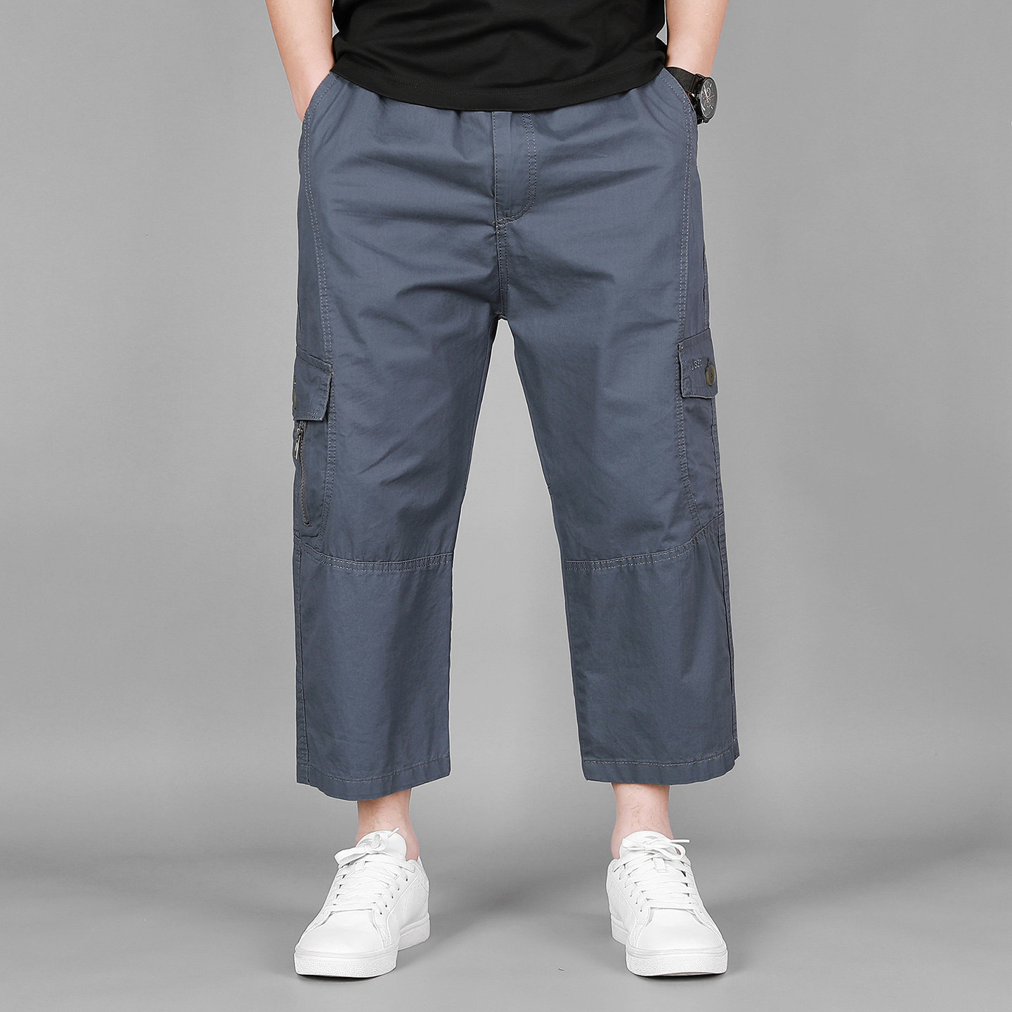 宽松多口袋抽绳工装 透气纯棉高腰休闲过膝短裤 八分裤 夏季 男士 新款