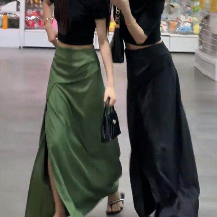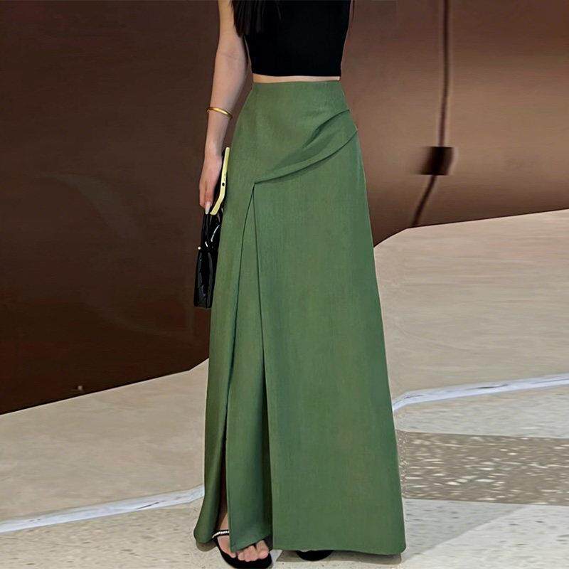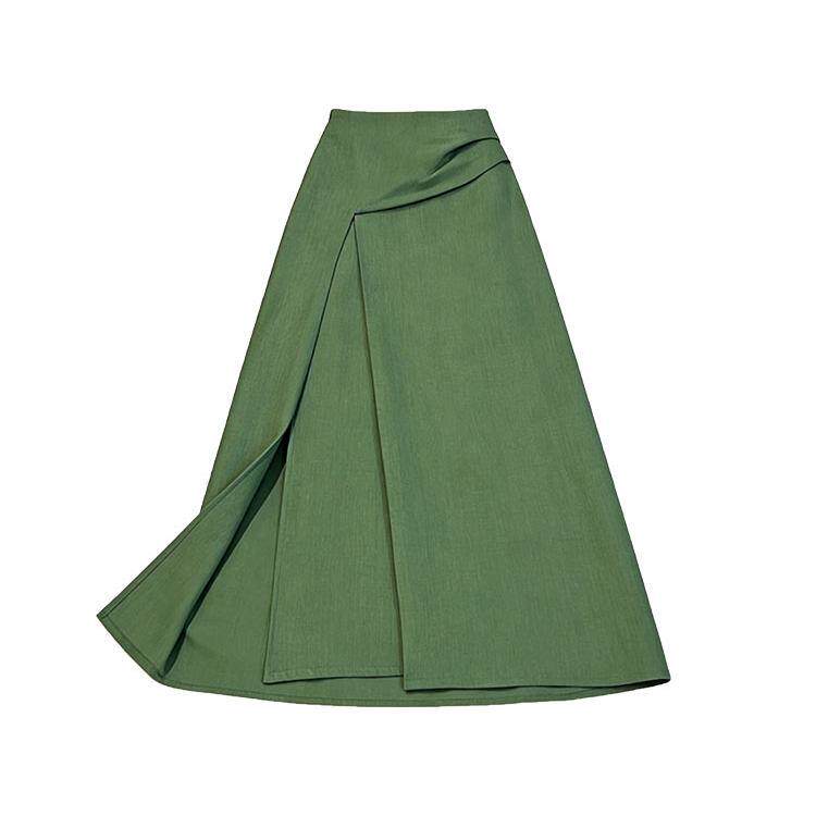 绿色不规则开叉a字半身裙女2026春夏高腰垂感遮胯显瘦气质长0317r