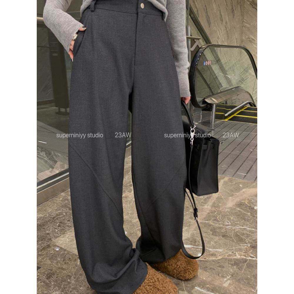 胖慵懒风休闲显瘦宽松阔腿拖地裤 女夏秋大码 裤 拼缝剪裁高腰西装
