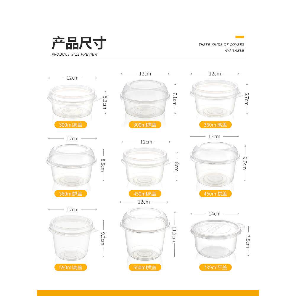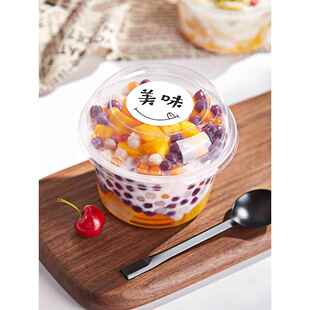 巧记一次性水果勺圆形外卖盒汤碗甜点糖芋头球冰粉专用碗午餐盒