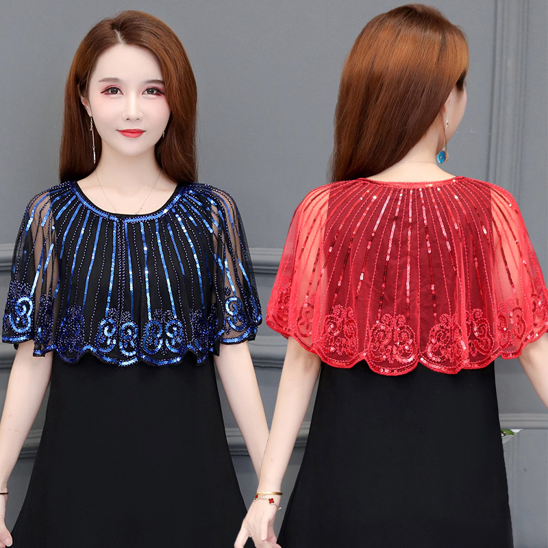 外搭配吊带裙超仙开衫 镂空网纱亮片薄款 圆领小坎肩 小披肩短款 夏季