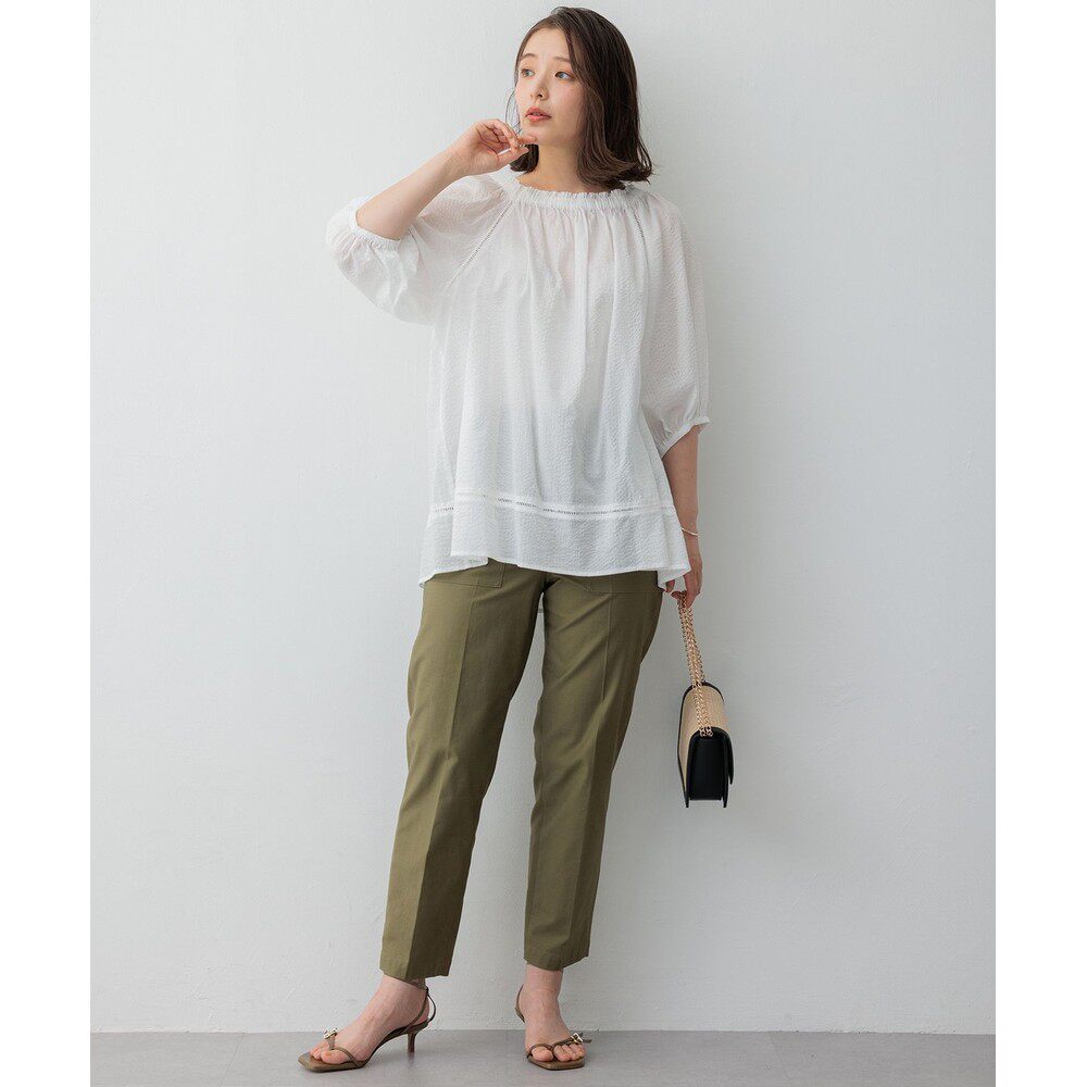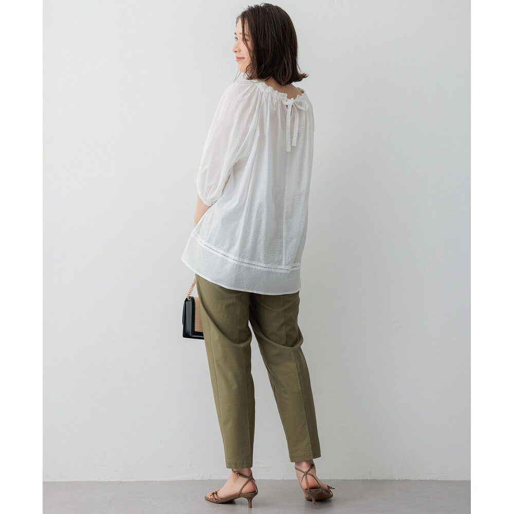 日本直邮23区 BLS2CM0962泡泡袖 女士 衬衫 棉质波浪纹长袖 1h可退