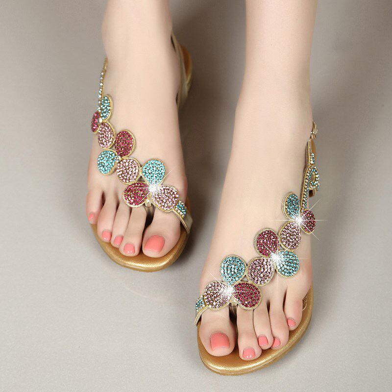 女夏2020新款 鞋 女凉鞋 夹脚防滑大码 平底平跟水钻鞋 凉鞋