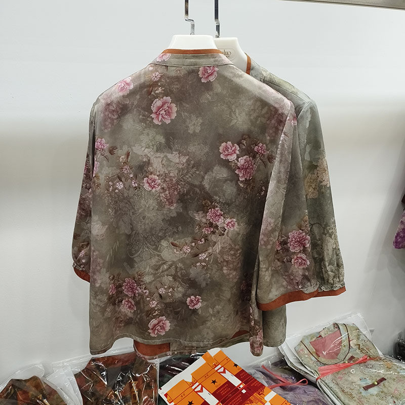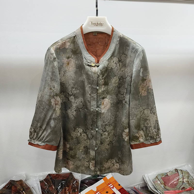 上衣服中老年人丝缎福太太 女绸缎新中式 品牌奶奶夏装 香云纱衬衫