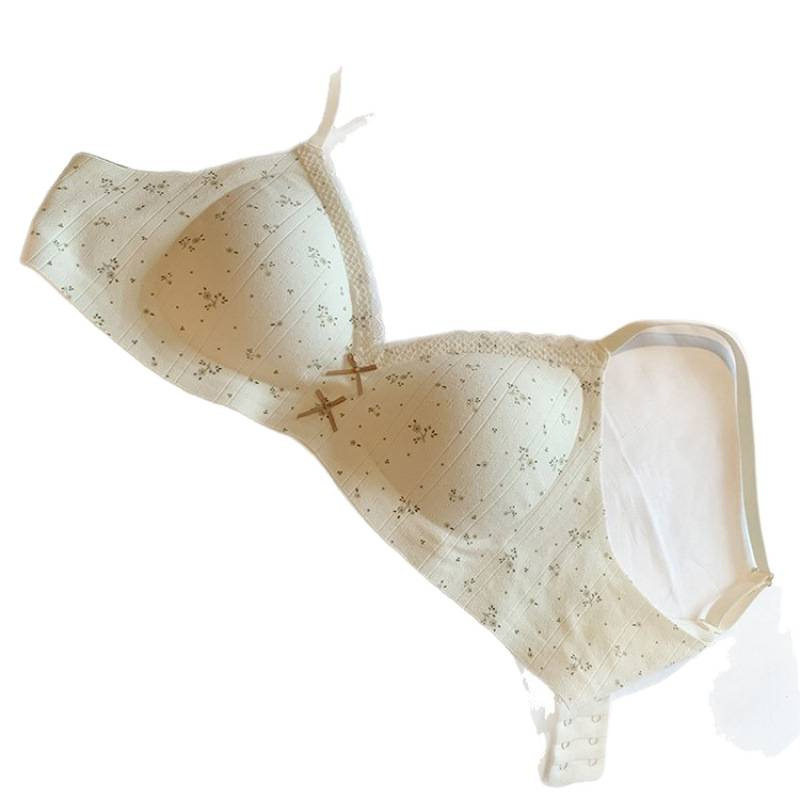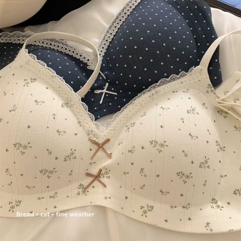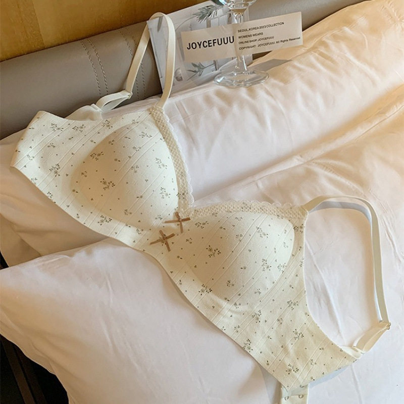 温柔提花碎花奶油舒芙蕾内衣女蕾丝边女生无钢圈内衣小胸聚拢文胸