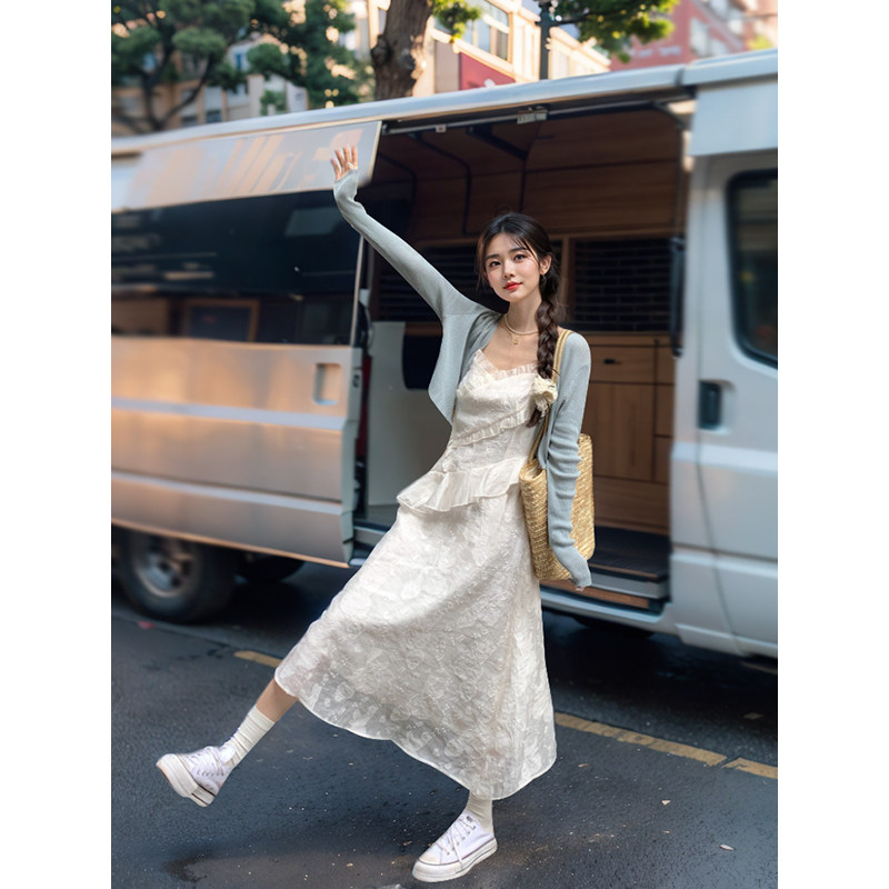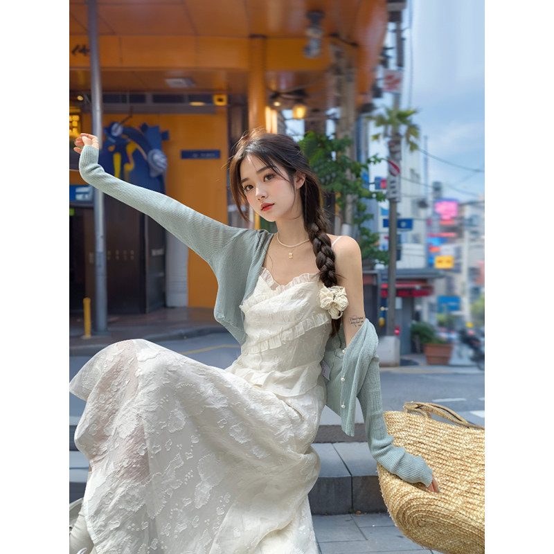 收腰显瘦气质仙女长裙子套装 吊带连衣裙子女夏季 韩系甜美法式 时尚