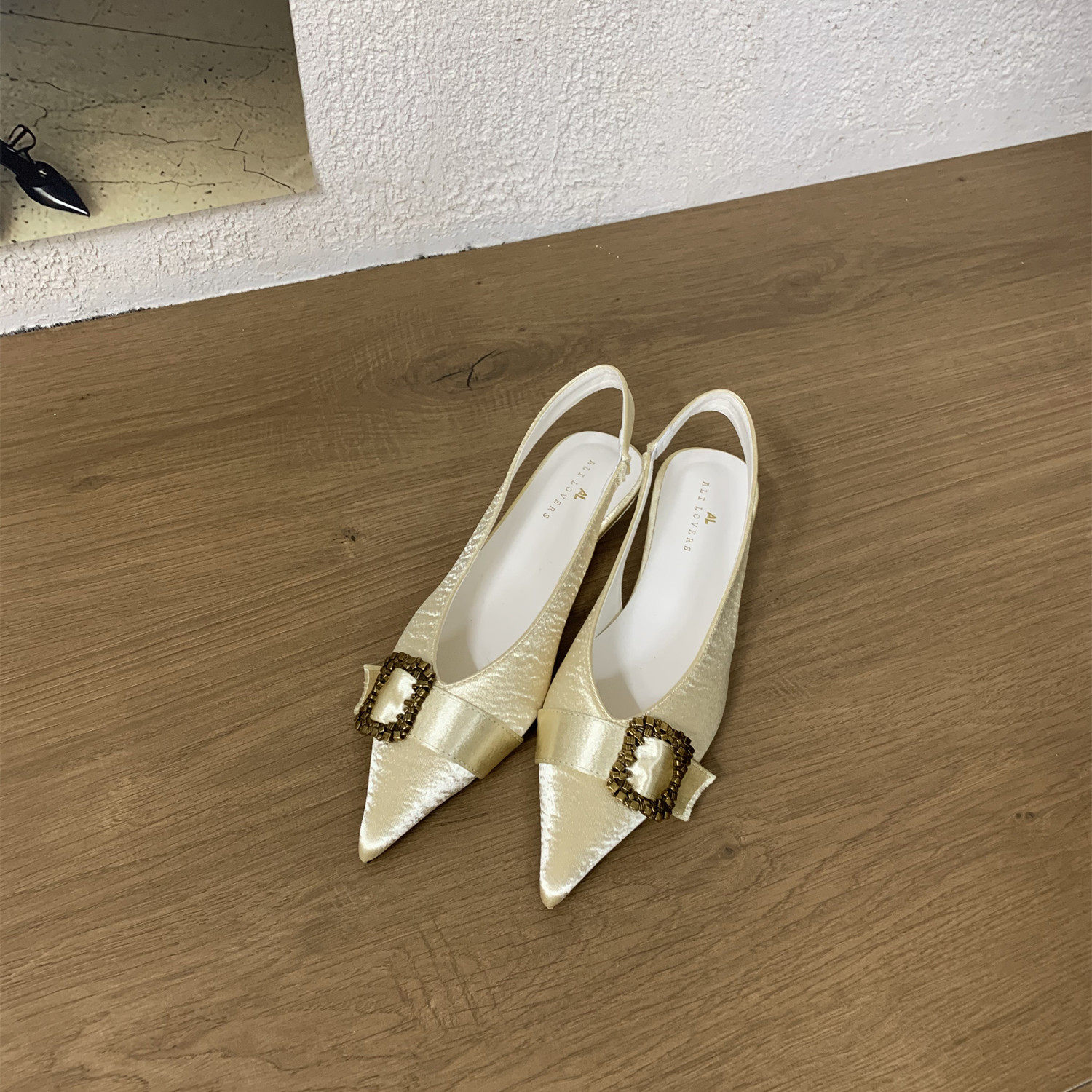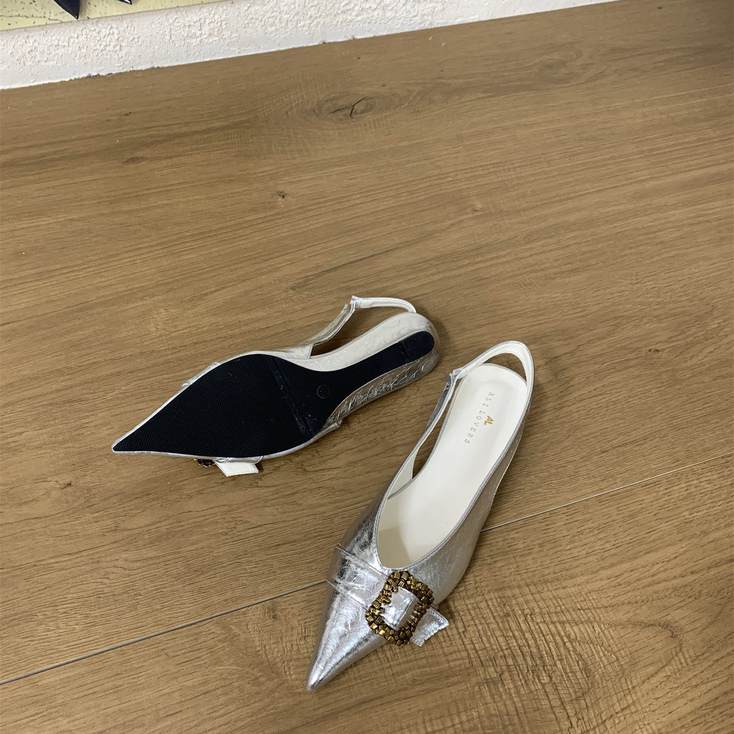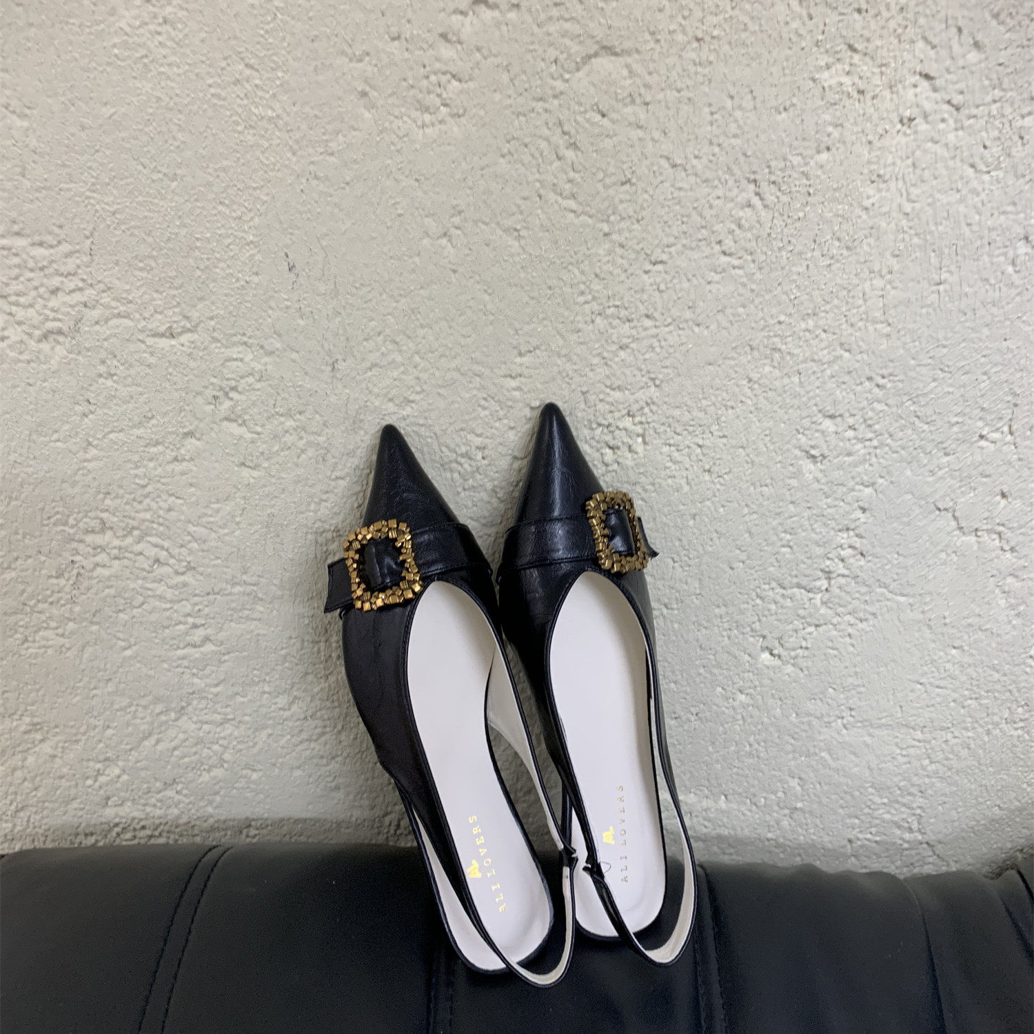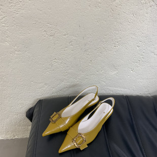 气质2026新款 女复古低跟包头凉鞋 韩版 一字金属扣尖头单鞋 夏季 法式