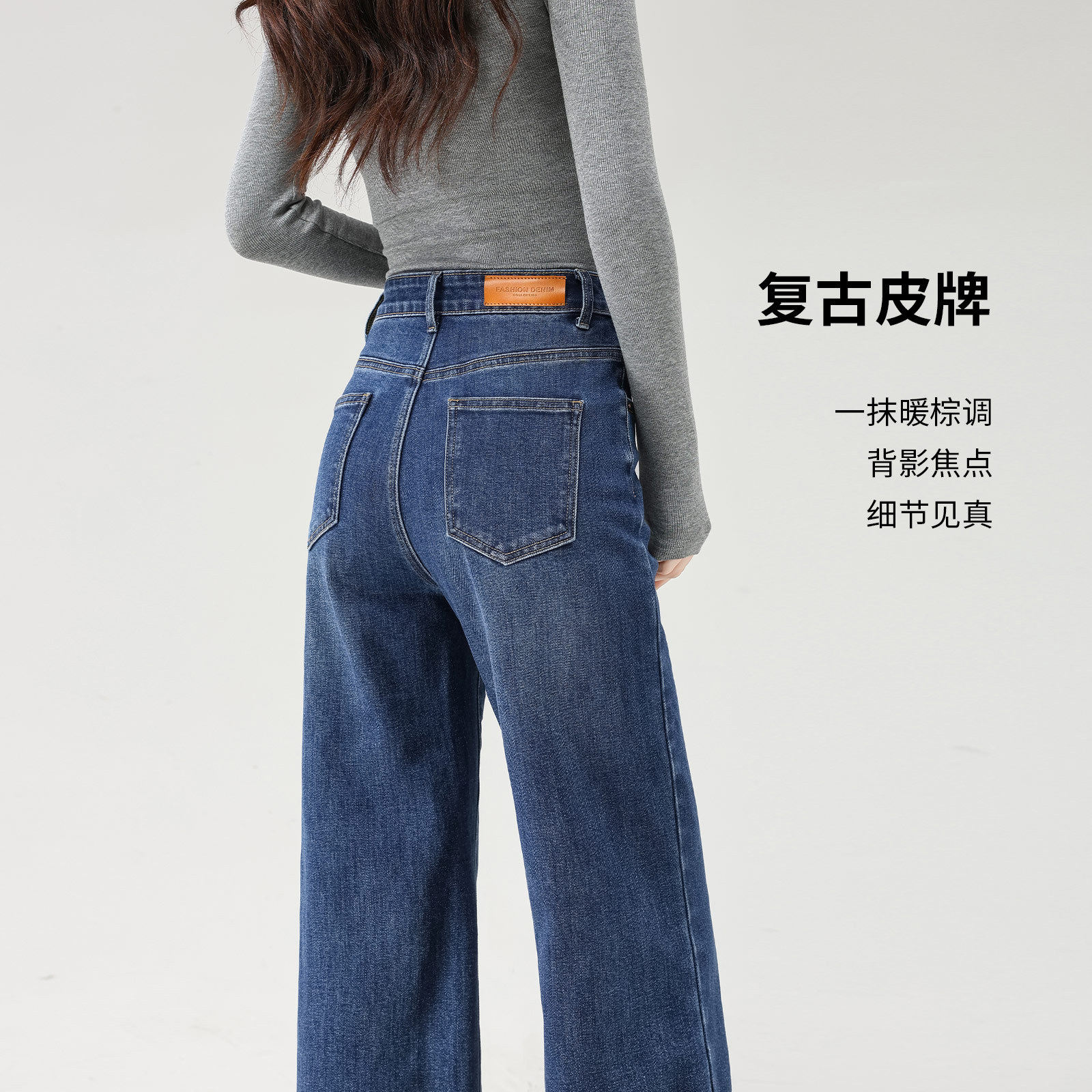 直筒显瘦遮肉复古蓝阔腿长裤 专柜优质长绒棉牛仔裤 女2026春夏窄版