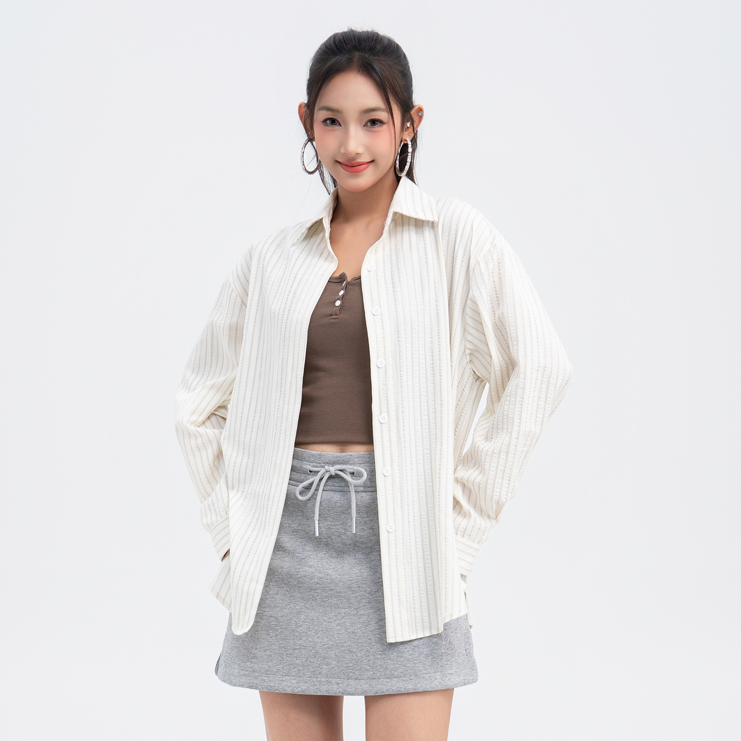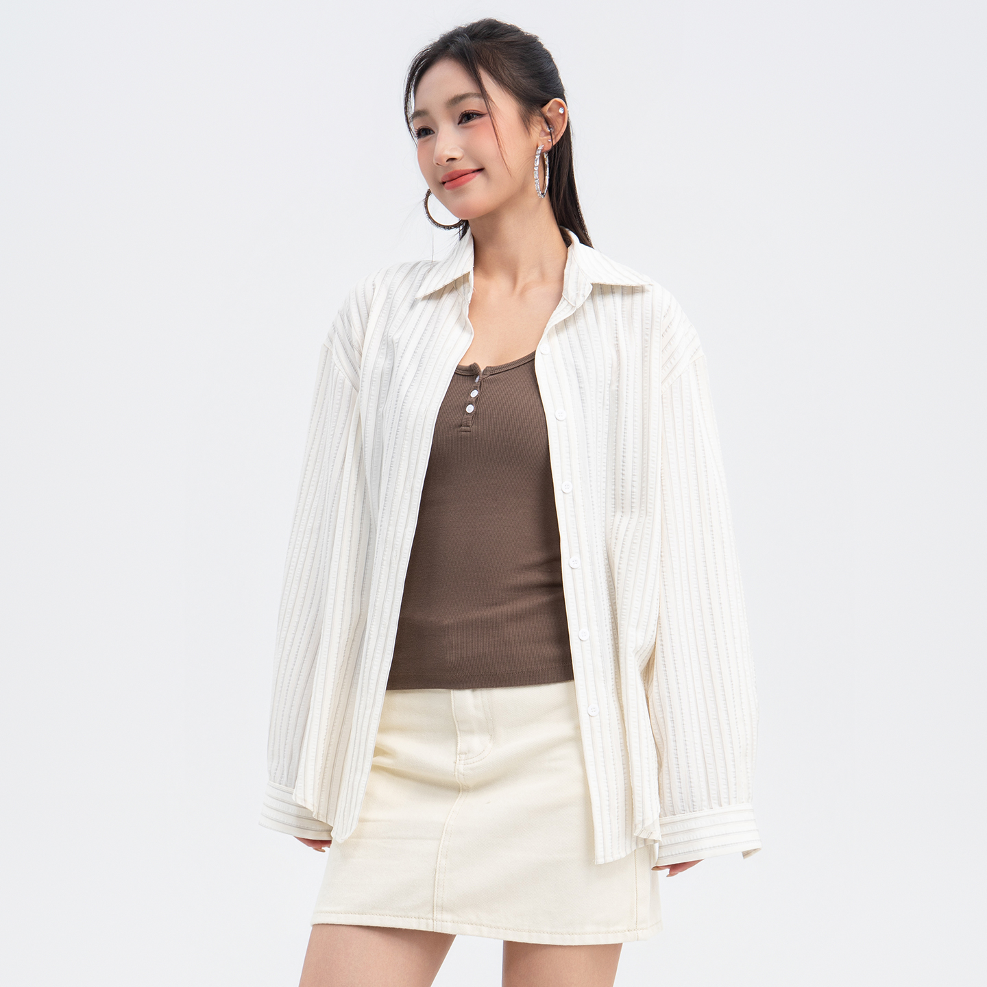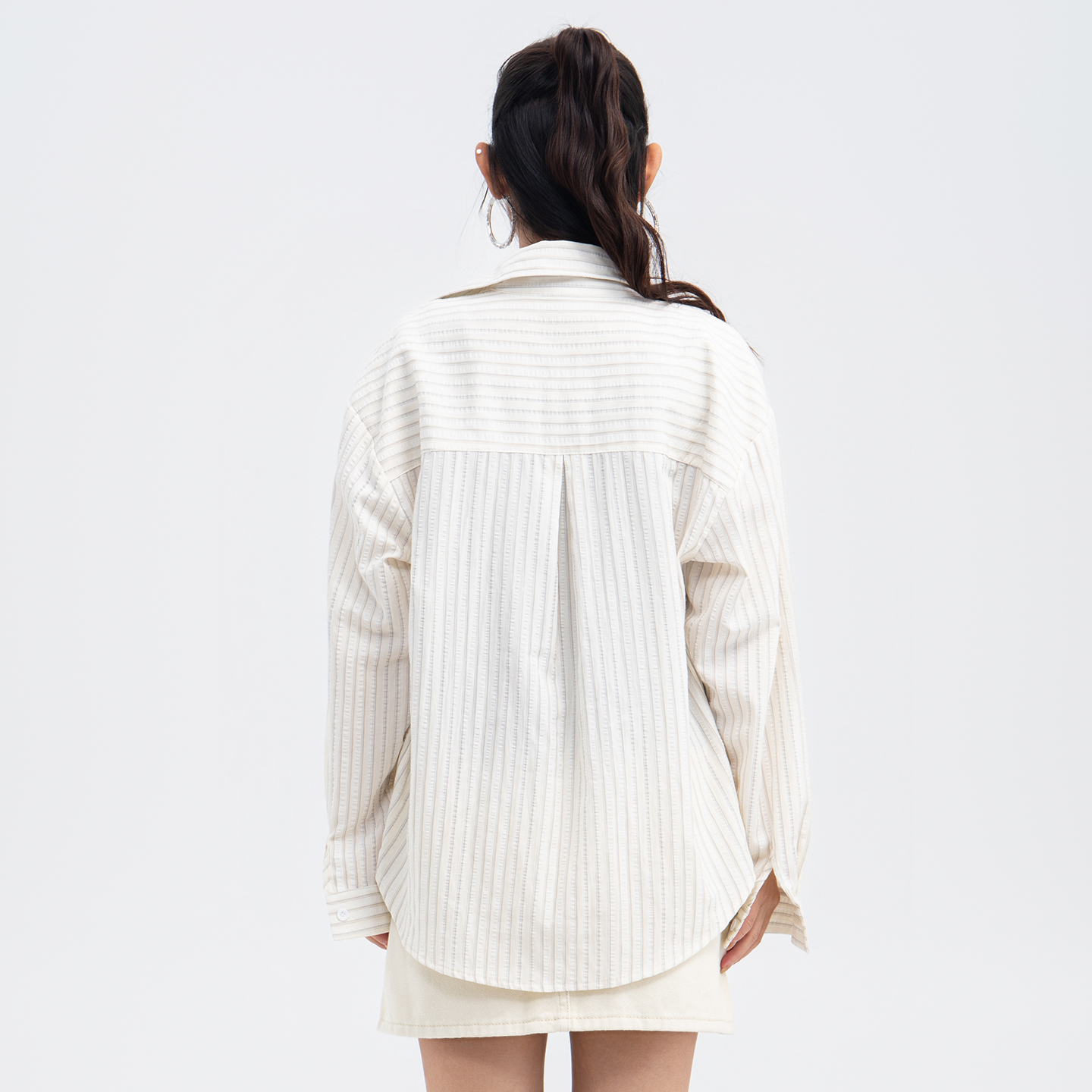衬衫 Vavu水洗牛仔长袖 贝壳扣设计感贴袋衬衣薄外套 口袋可挂件