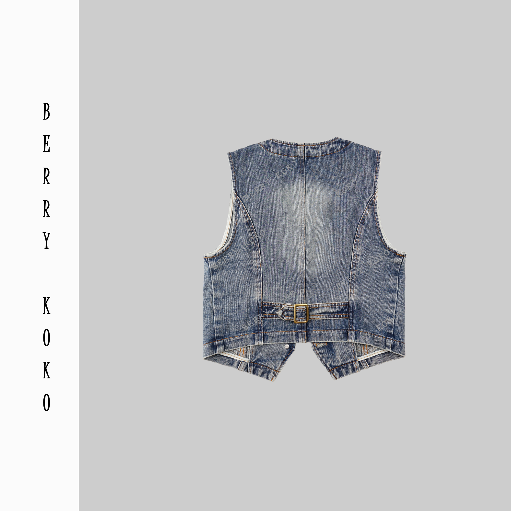 MISSKO可可欢姐 复古显瘦正肩老钱风做旧洗水牛仔马甲外穿女 秋季