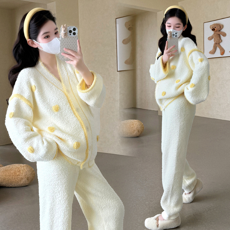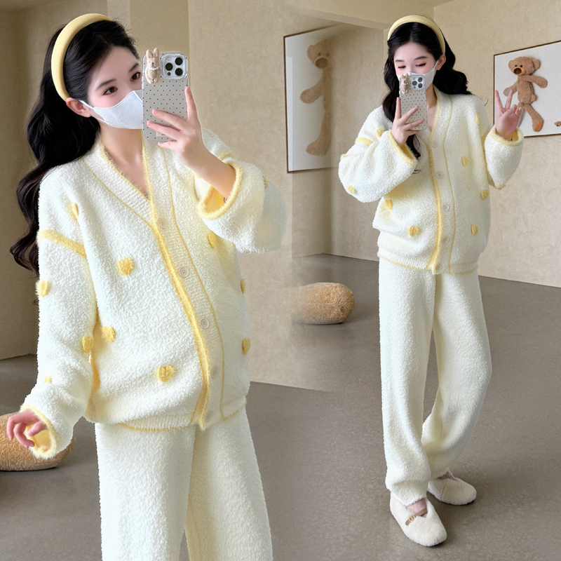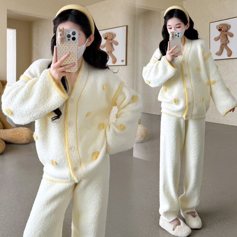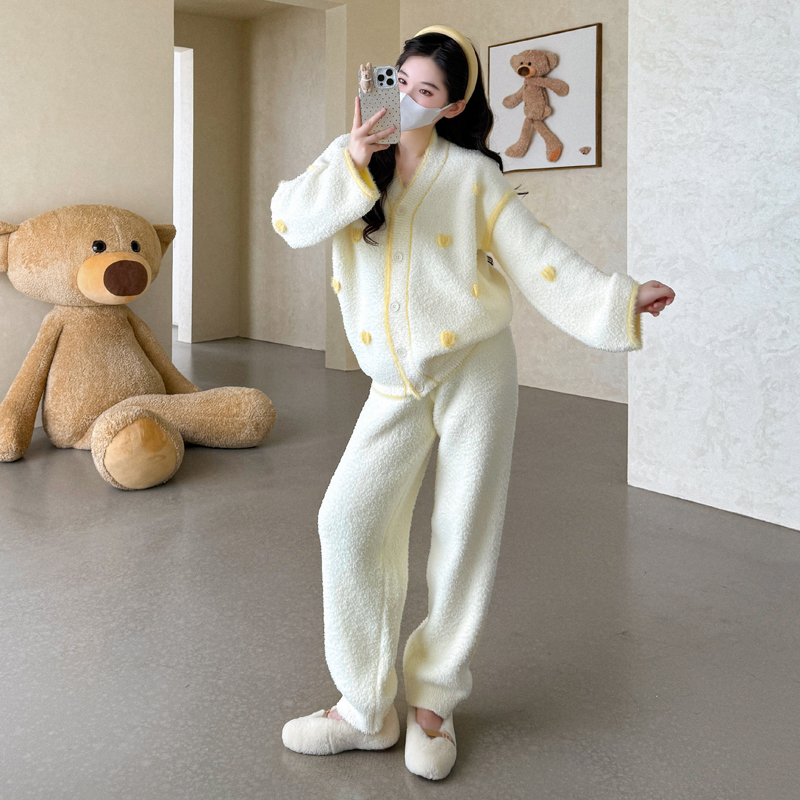 外穿百搭宽松懒人套装 仙女暖暖裤 女厚珊瑚绒家居套装 暖暖套装 套装