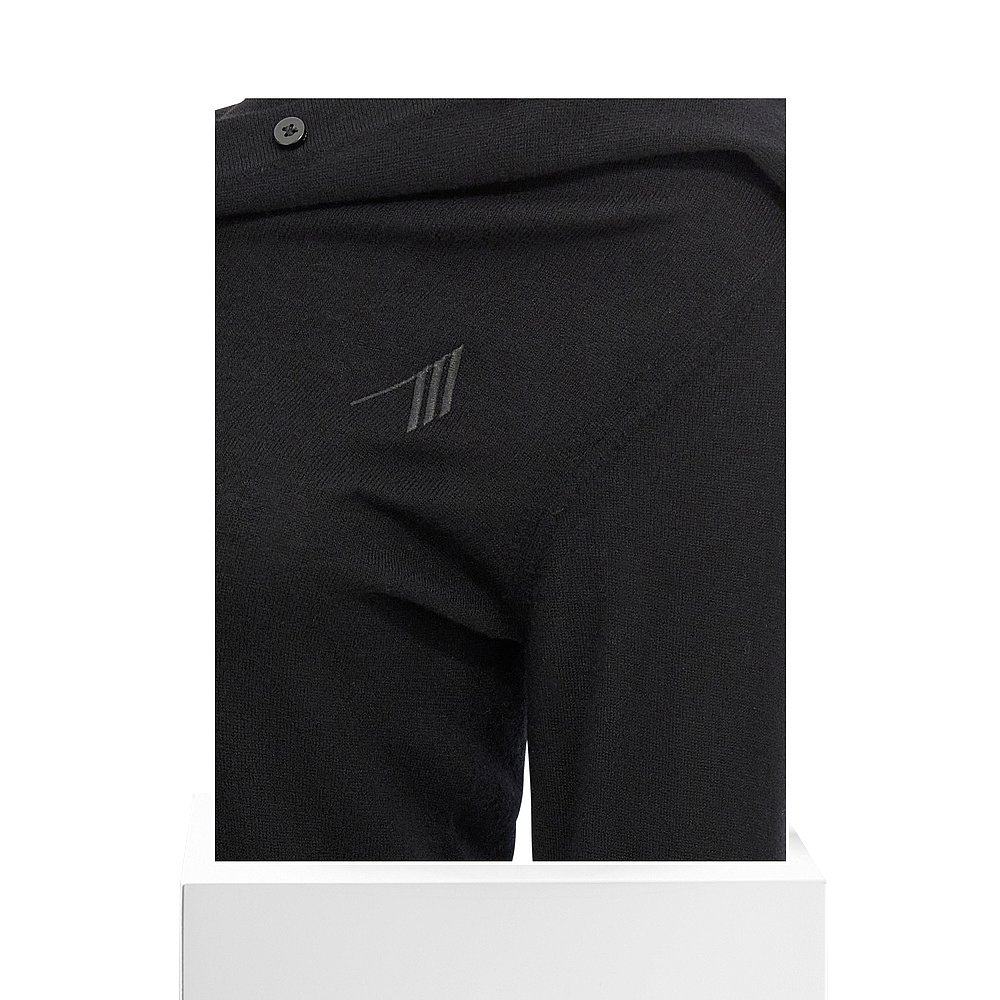 Fanptntox性感大V领正肩修身 收腰连衣裙 针织包臀短裙金属纽扣长袖