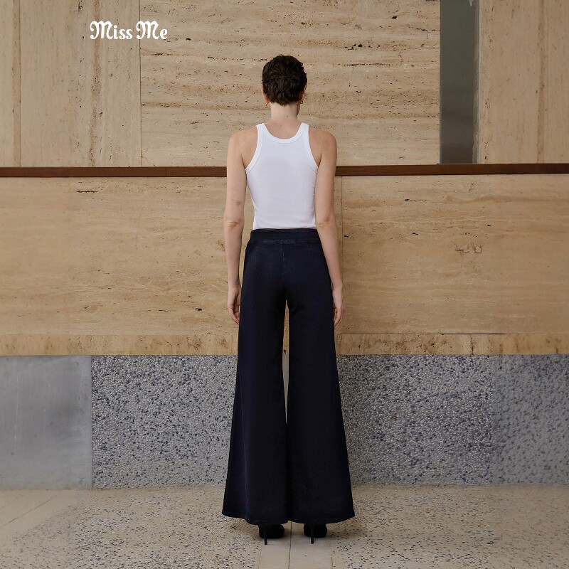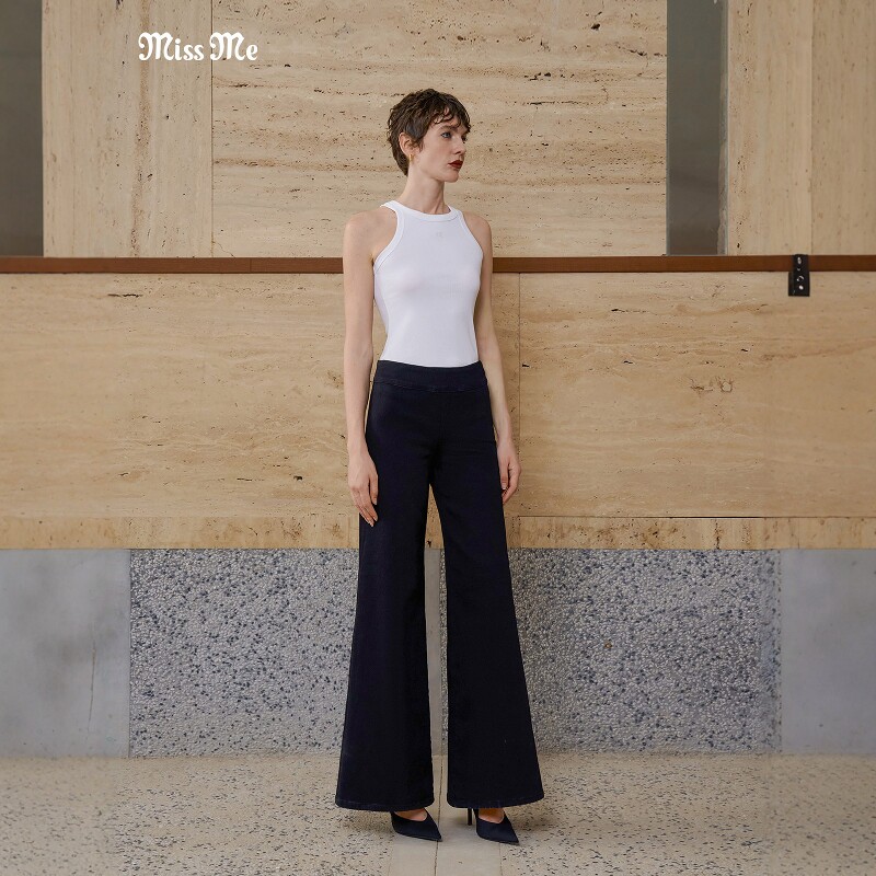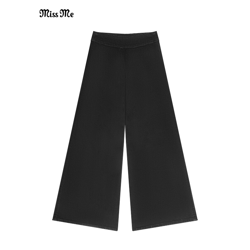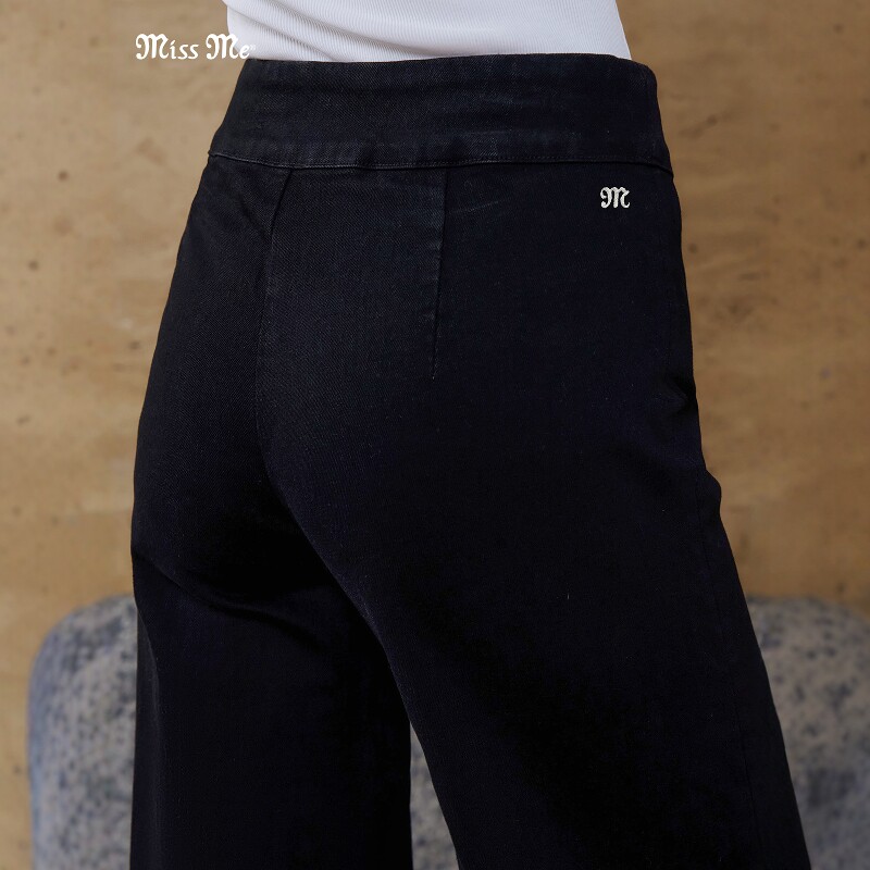 黑棉质中腰松紧腰高弹零束缚阔腿牛仔裤 经典 ME2636 MISS