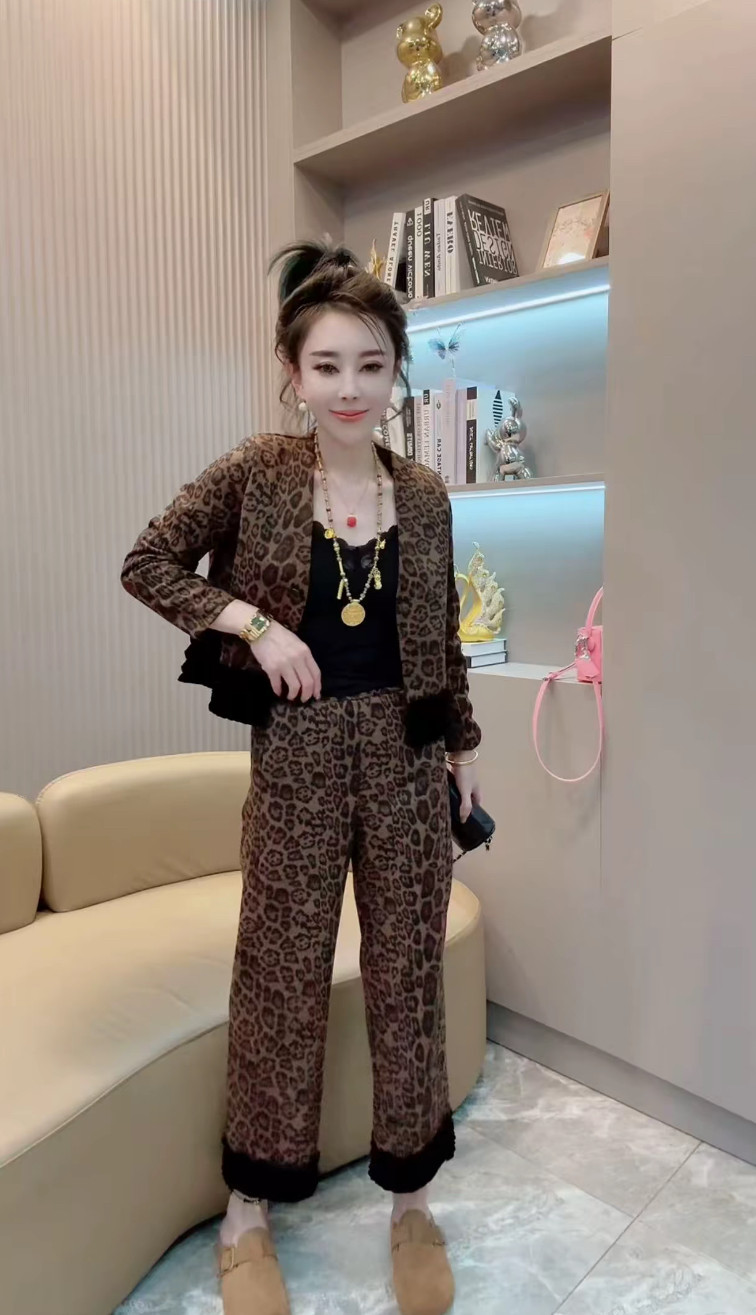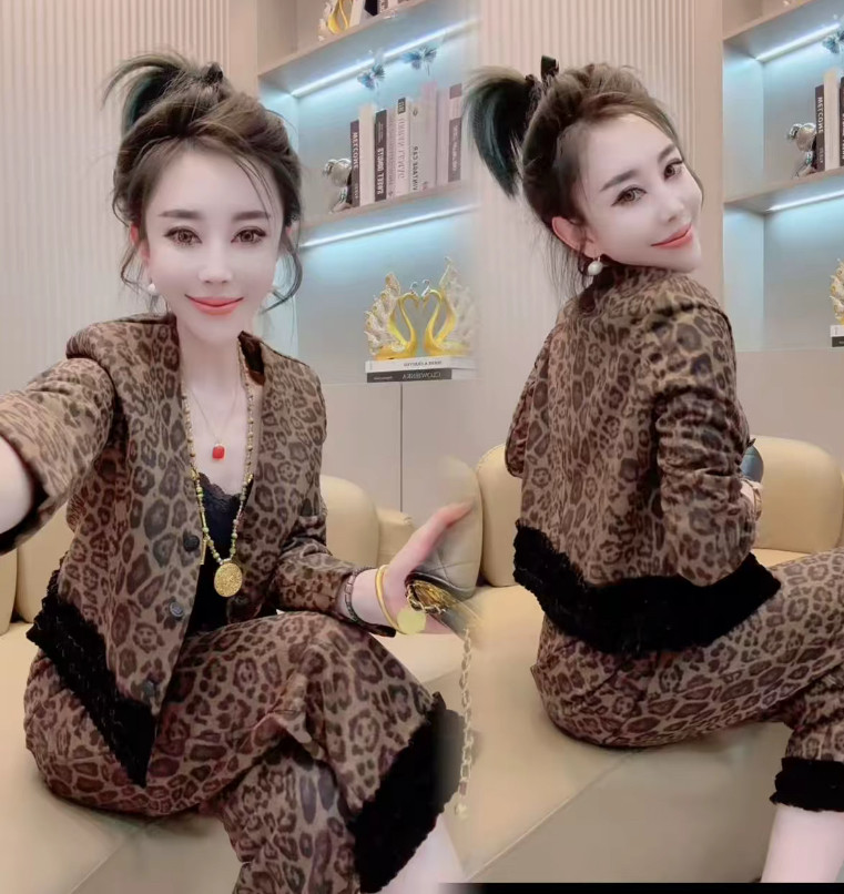 豹纹裤 裤 子女秋冬显瘦直筒哈伦裤 大码 子 休闲小脚萝卜裤 2025年新款
